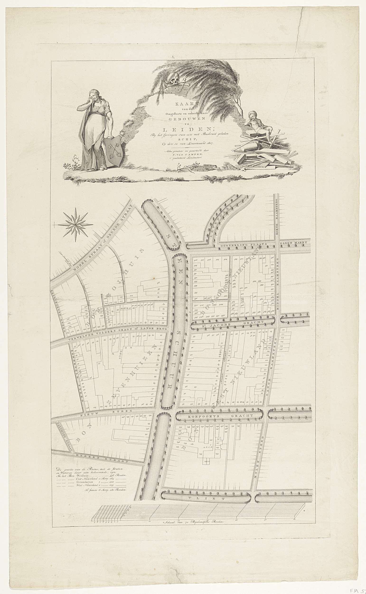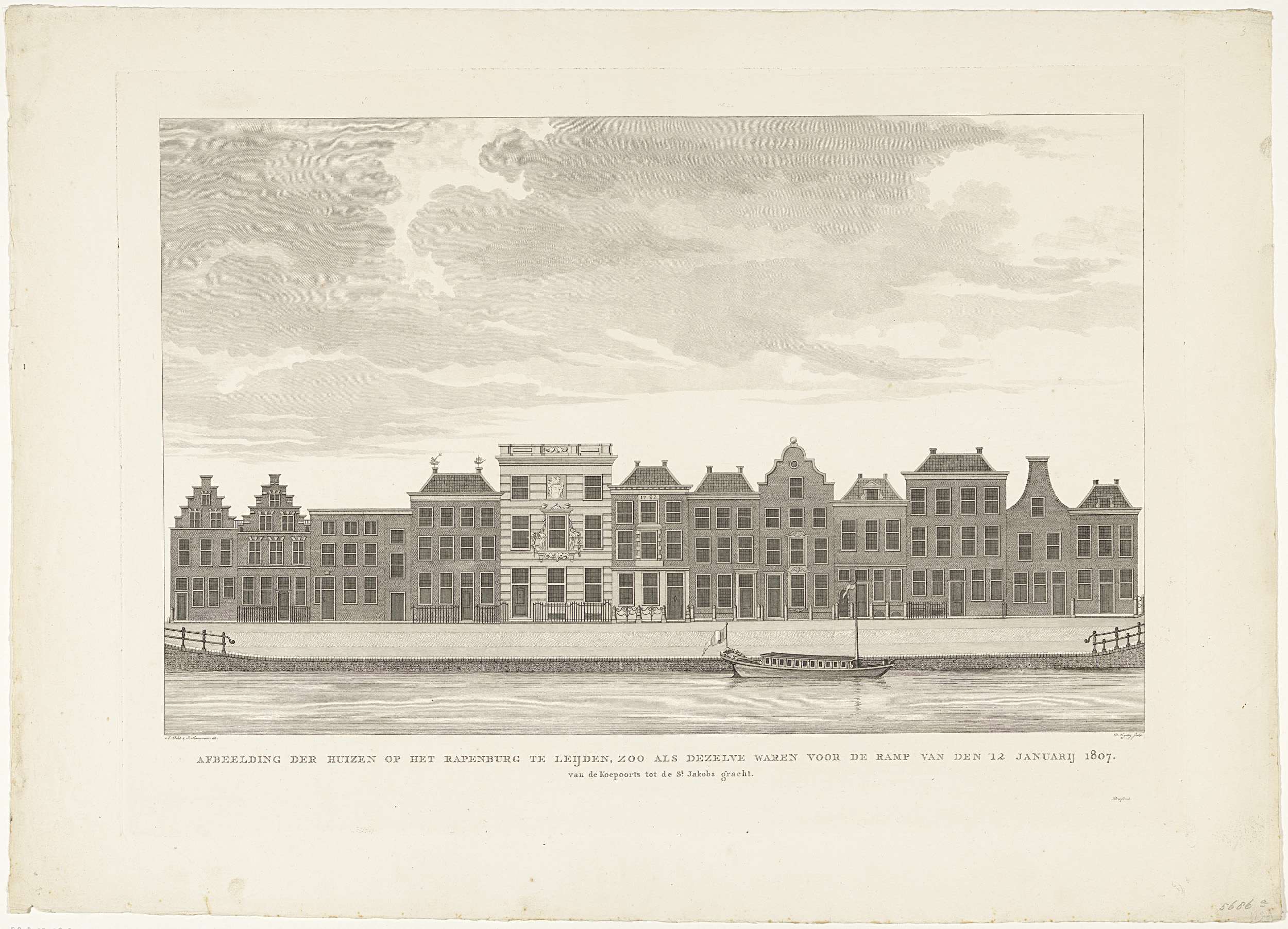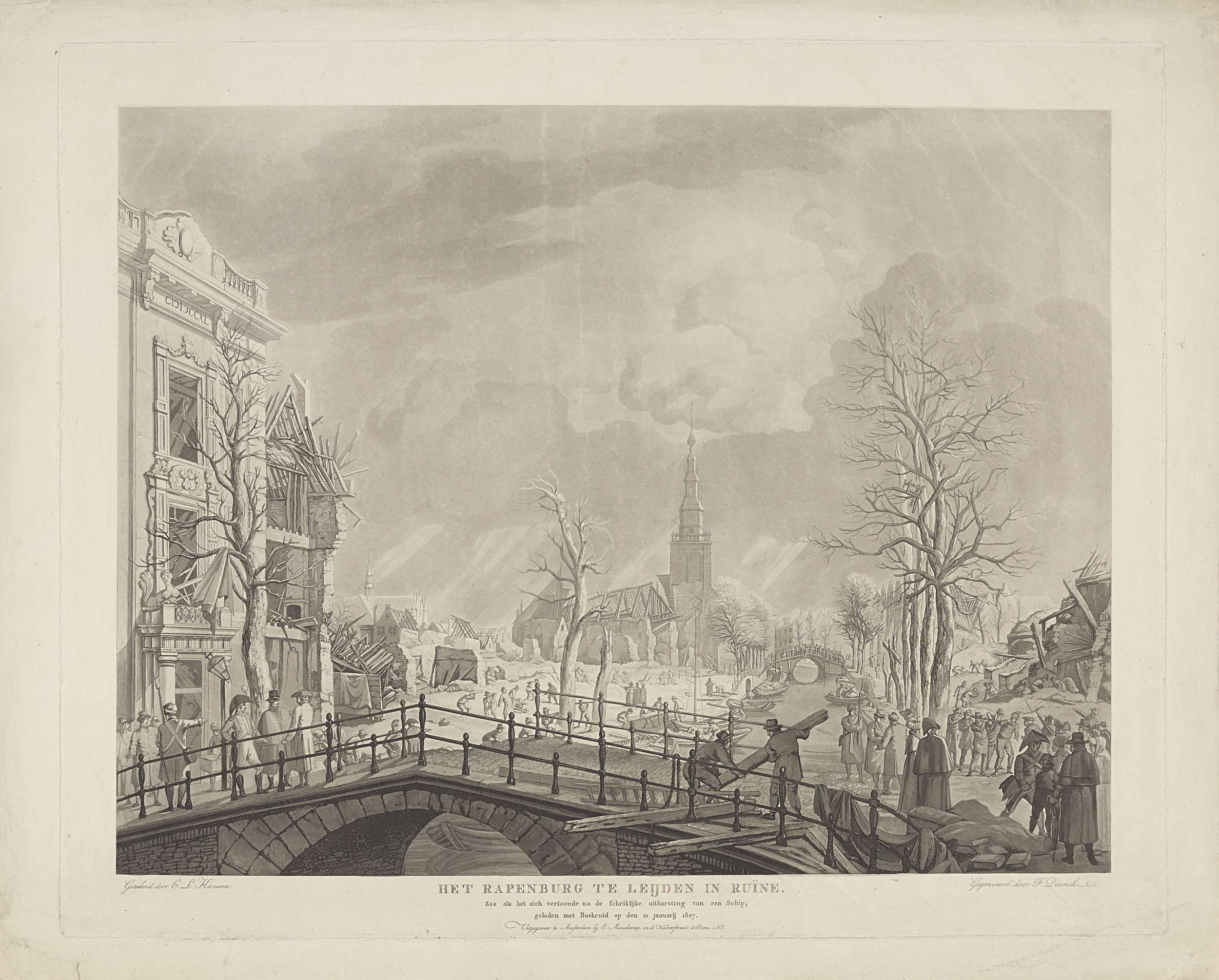 Het Rapenburg te Leijden in ruïne. Zoo als het zich ...