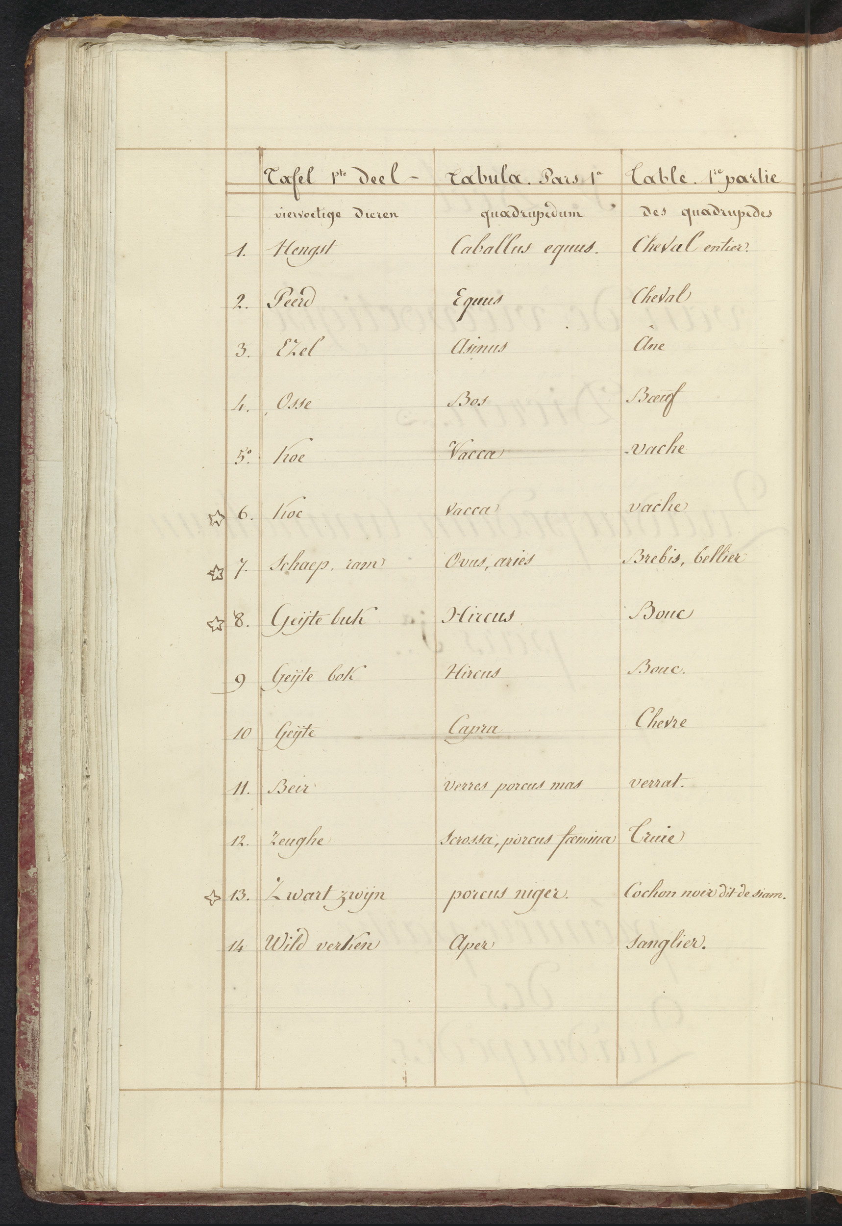 Lijst van dieren in eerste deel van de viervoeters