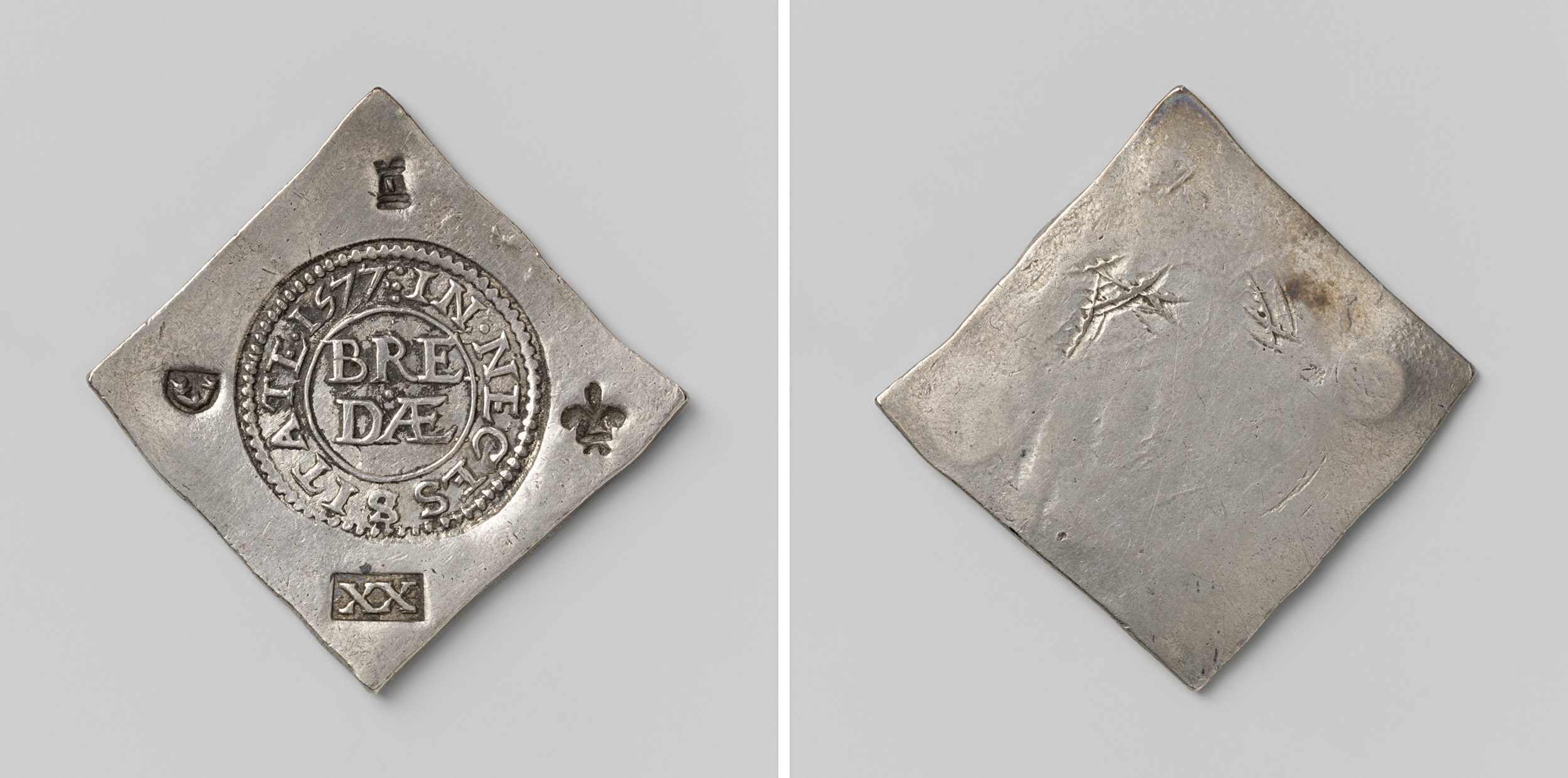 Drie stuiver (vals), noodmunt uit Breda, kopie van e...