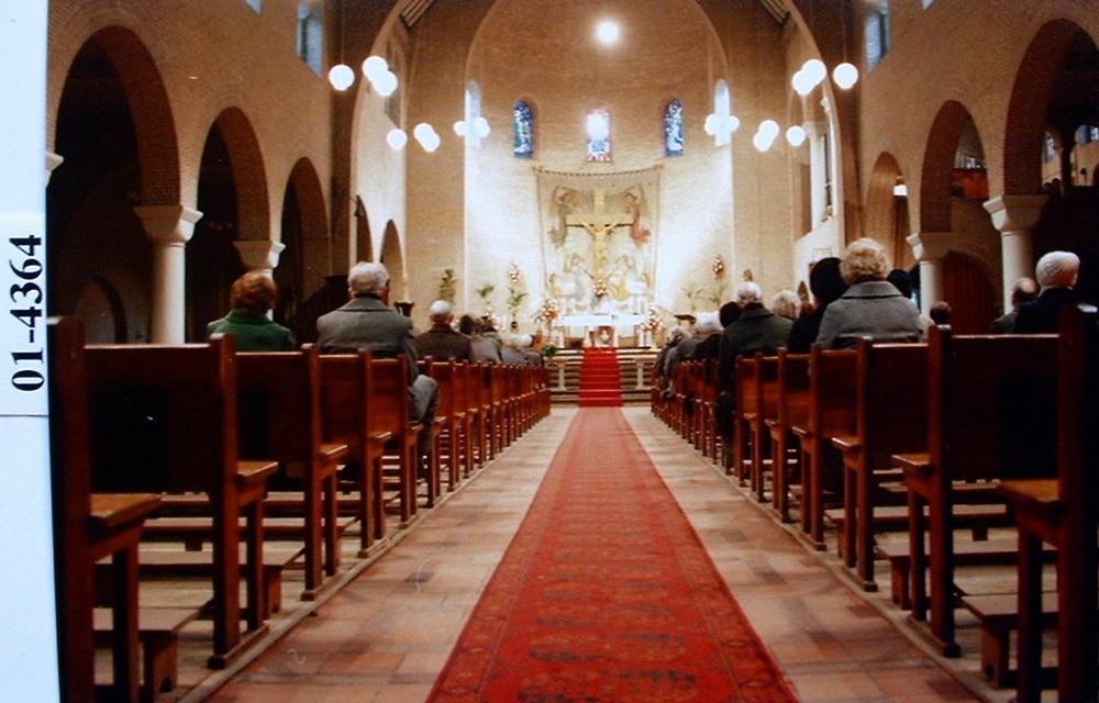 Het interieur van de O.L Kerk Huissen stad met altaar