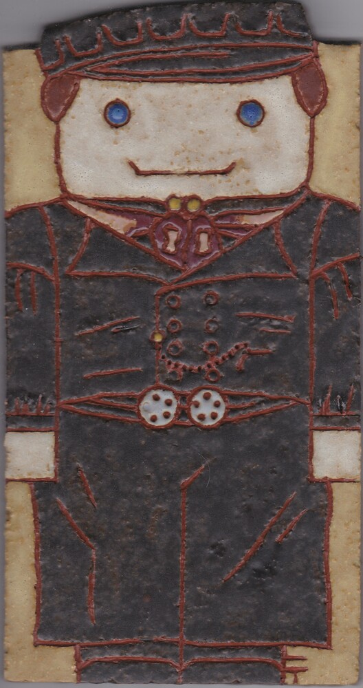 Tegel met ingekerfde lijnen, met voorstelling: stree...