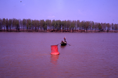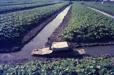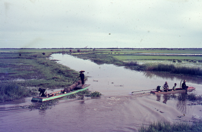 Delta van de Donau in Roemenië, mei 1969. Leidammen ...