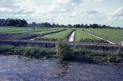 Rivier in een polderlandschap, vermoedelijk in Thail...