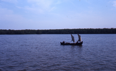 Delta van de Donau in Roemenië, mei 1969. Bootje met...