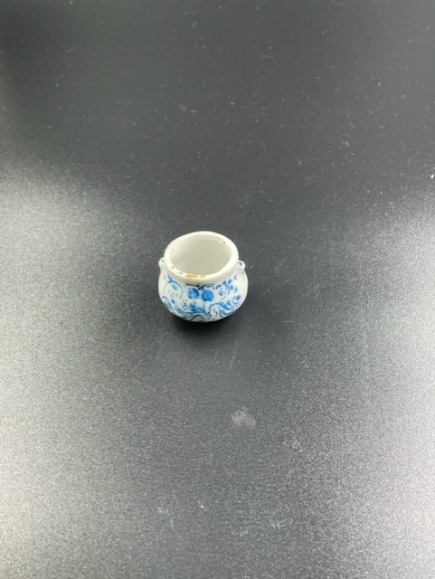Witte aardewerek dikbuikige pot met blauwe beschilde...