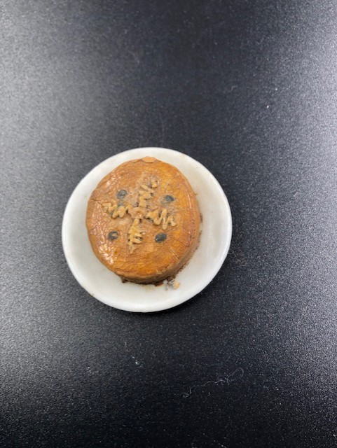 Tinnen bord met stukje vlees