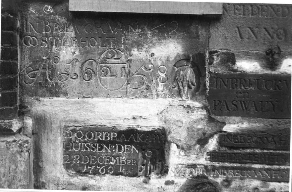 Foto, voorstellende peilstenen van hoogwaterstanden,...
