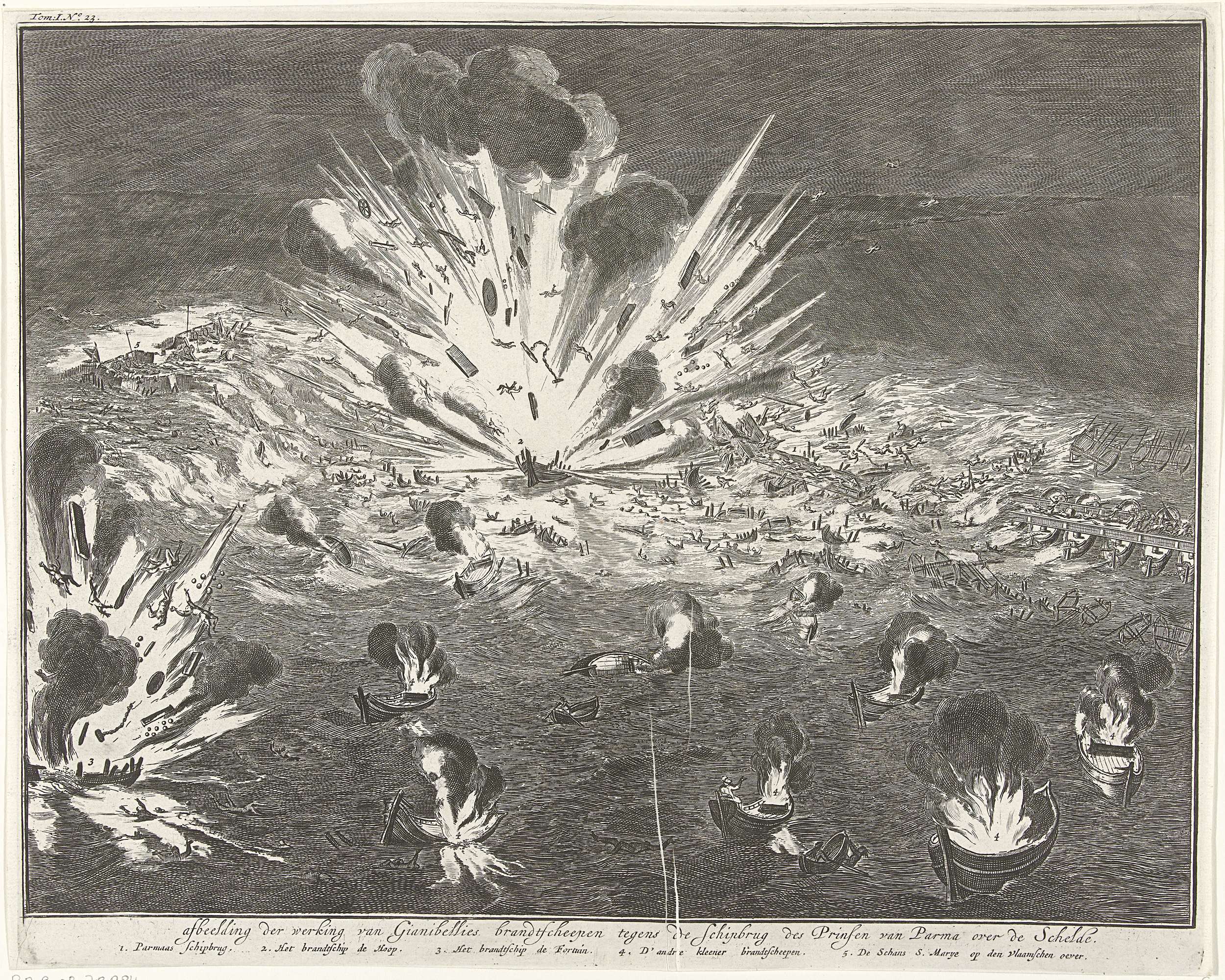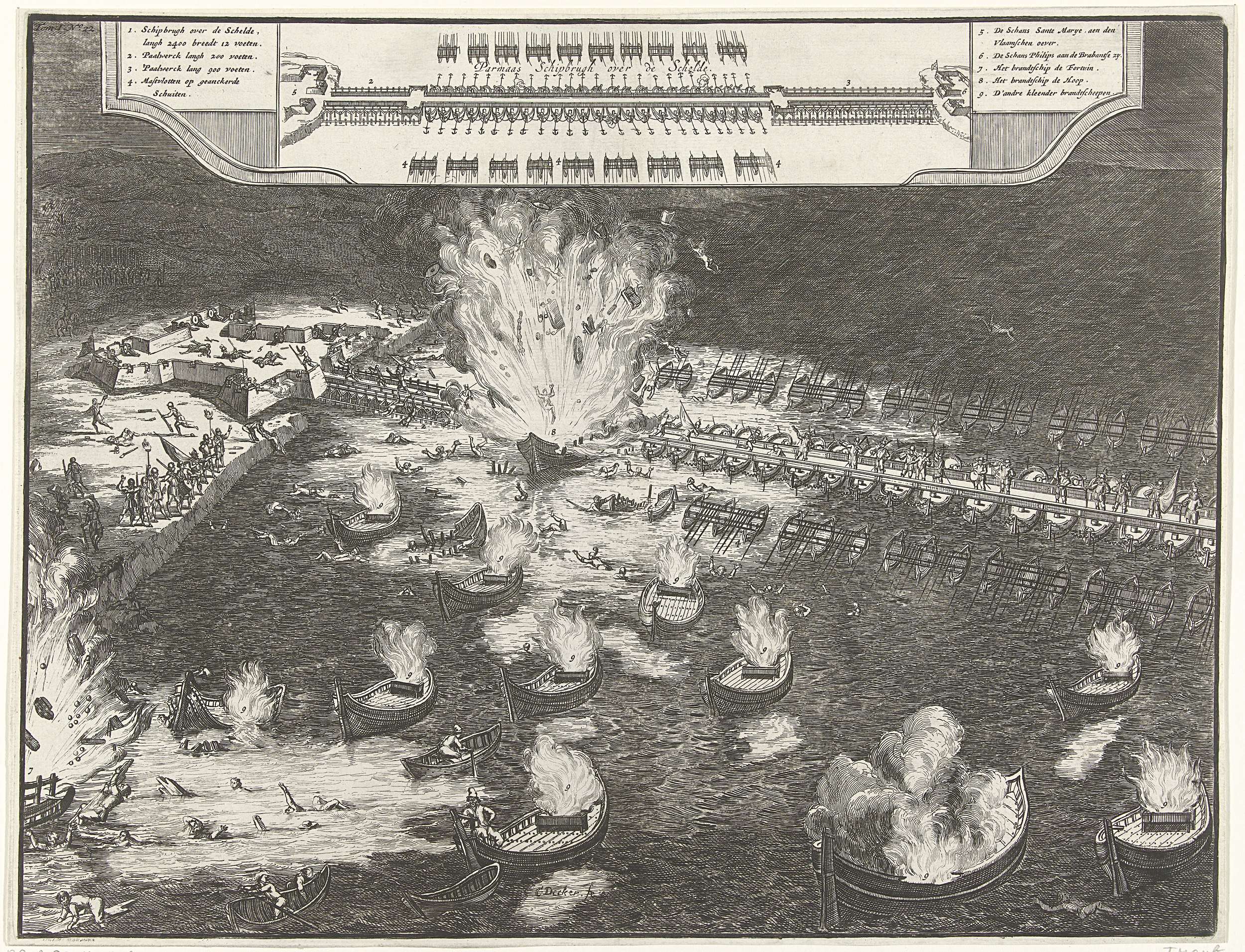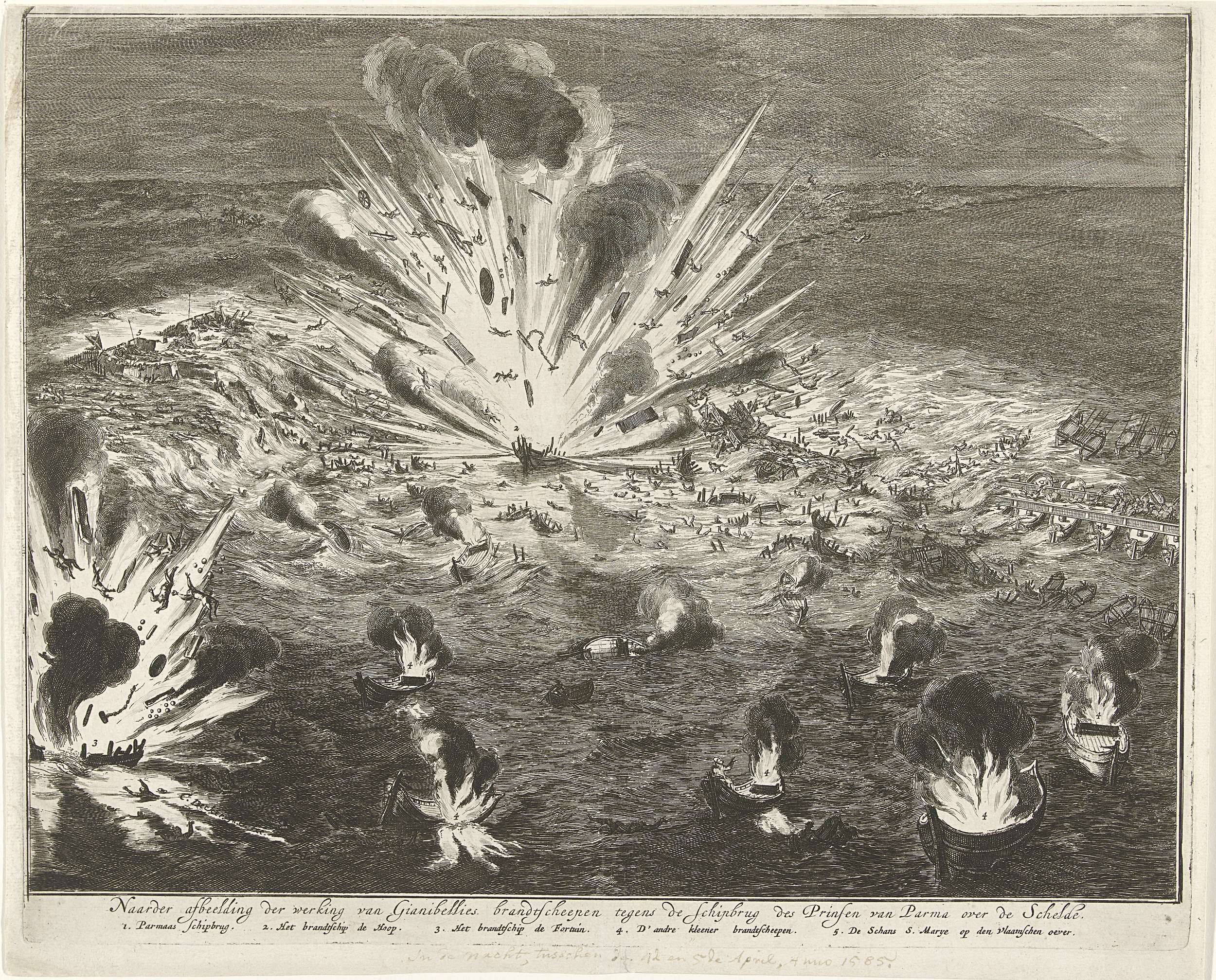 Opblazen van de schipbrug in de Schelde, 1585