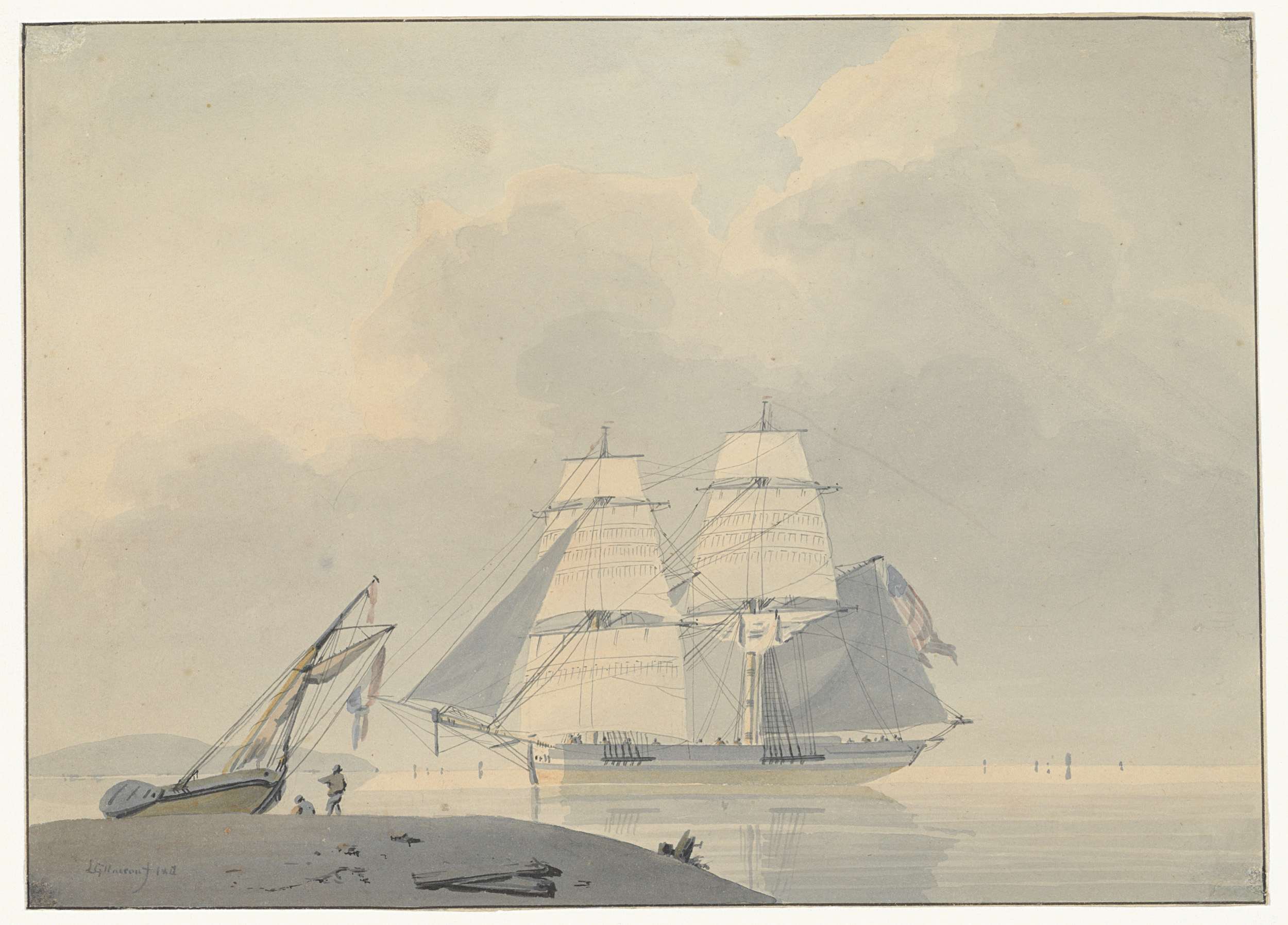 Zeilschip in stil water