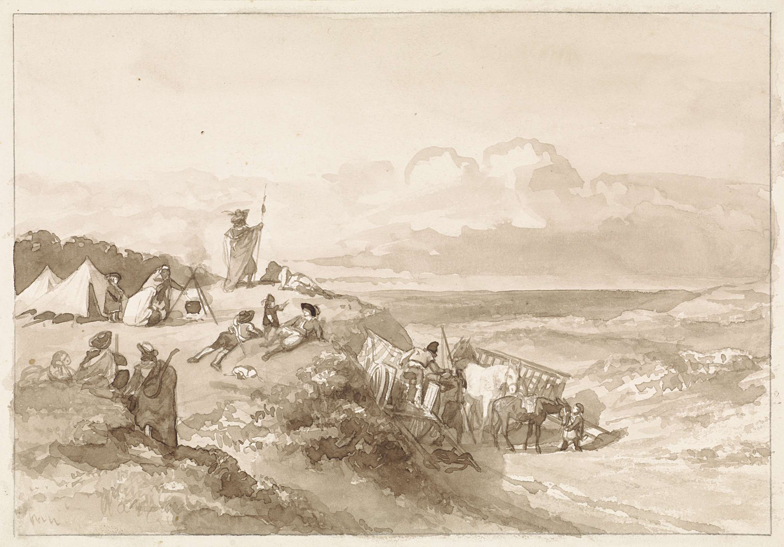 Bivak in heuvelig landschap