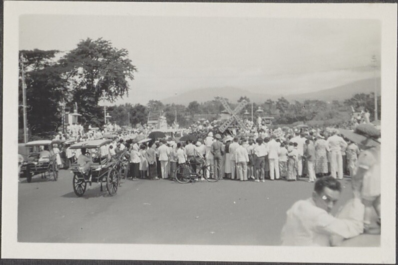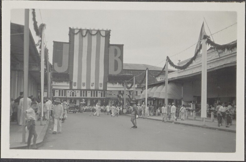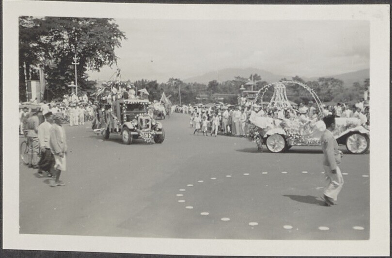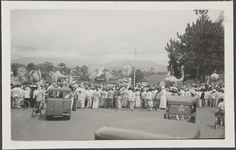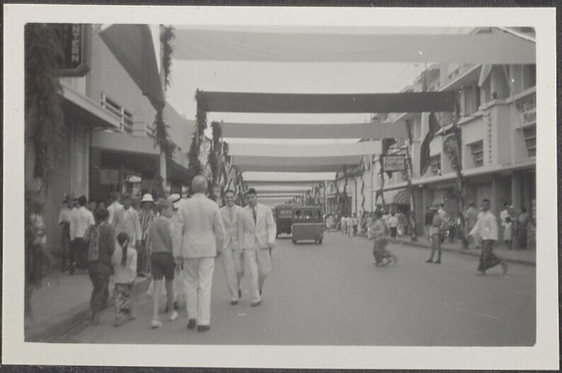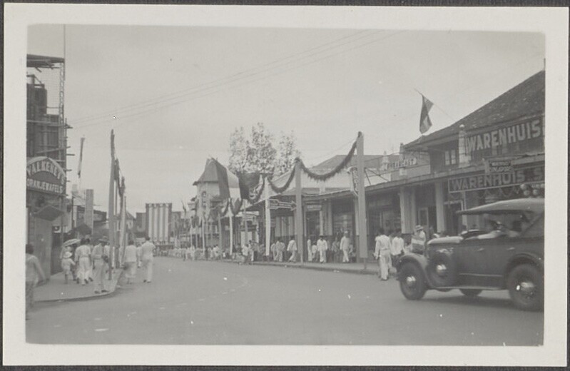 De feestelijk versierde Bragaweg in Bandoeng, ter ge...