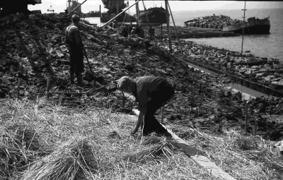 Aanleg van de dijken van de Noordoostpolder. Aanvoer...