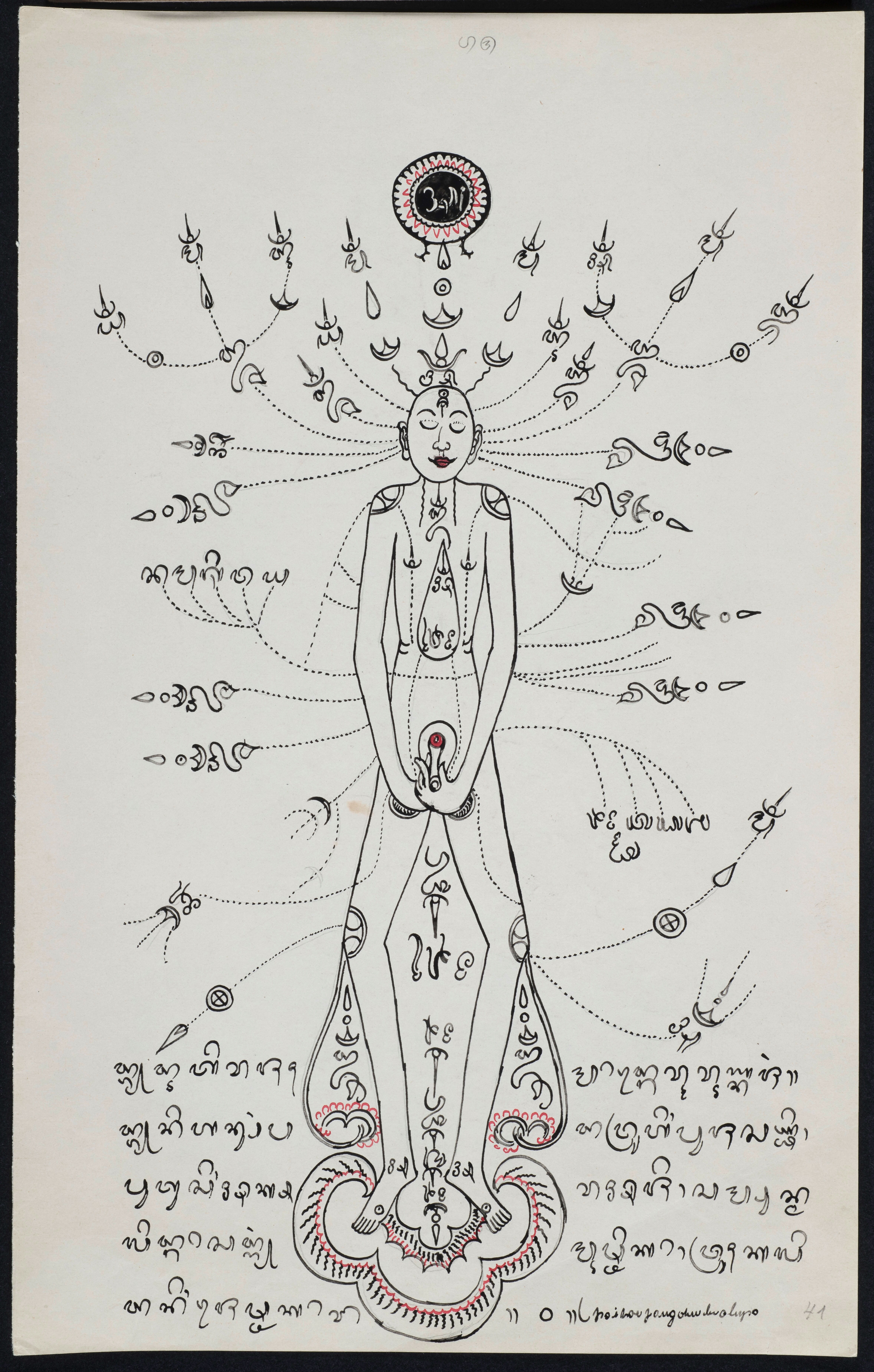 Magisch-medische tekening met tekst en een afbeeldin...