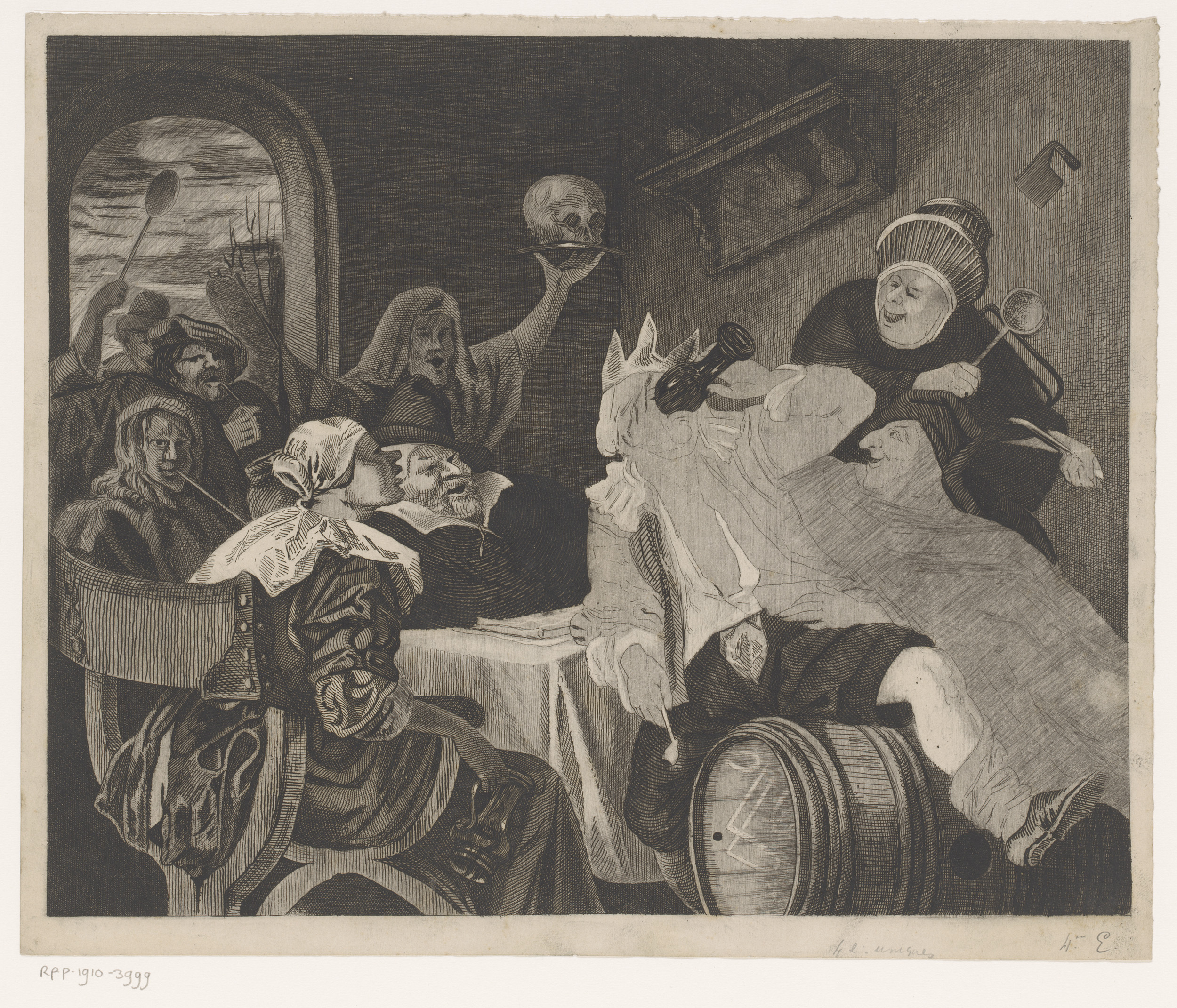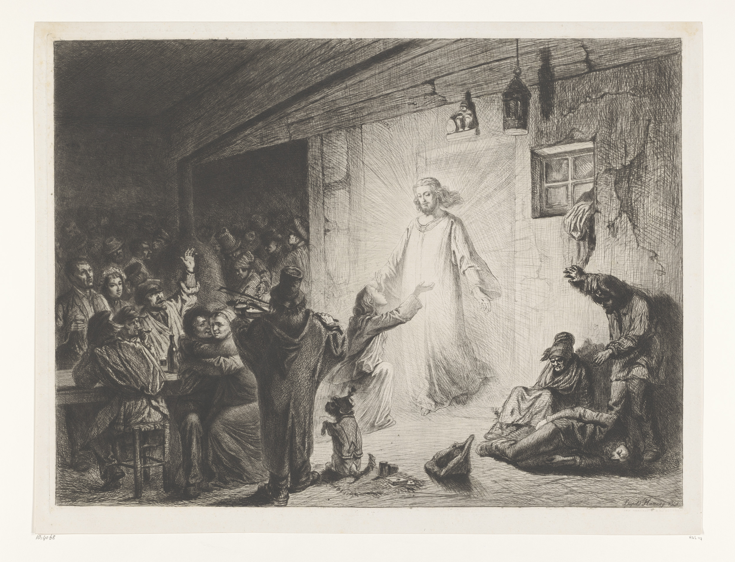 Christus verschijnt in een herberg, een jonge vrouw ...