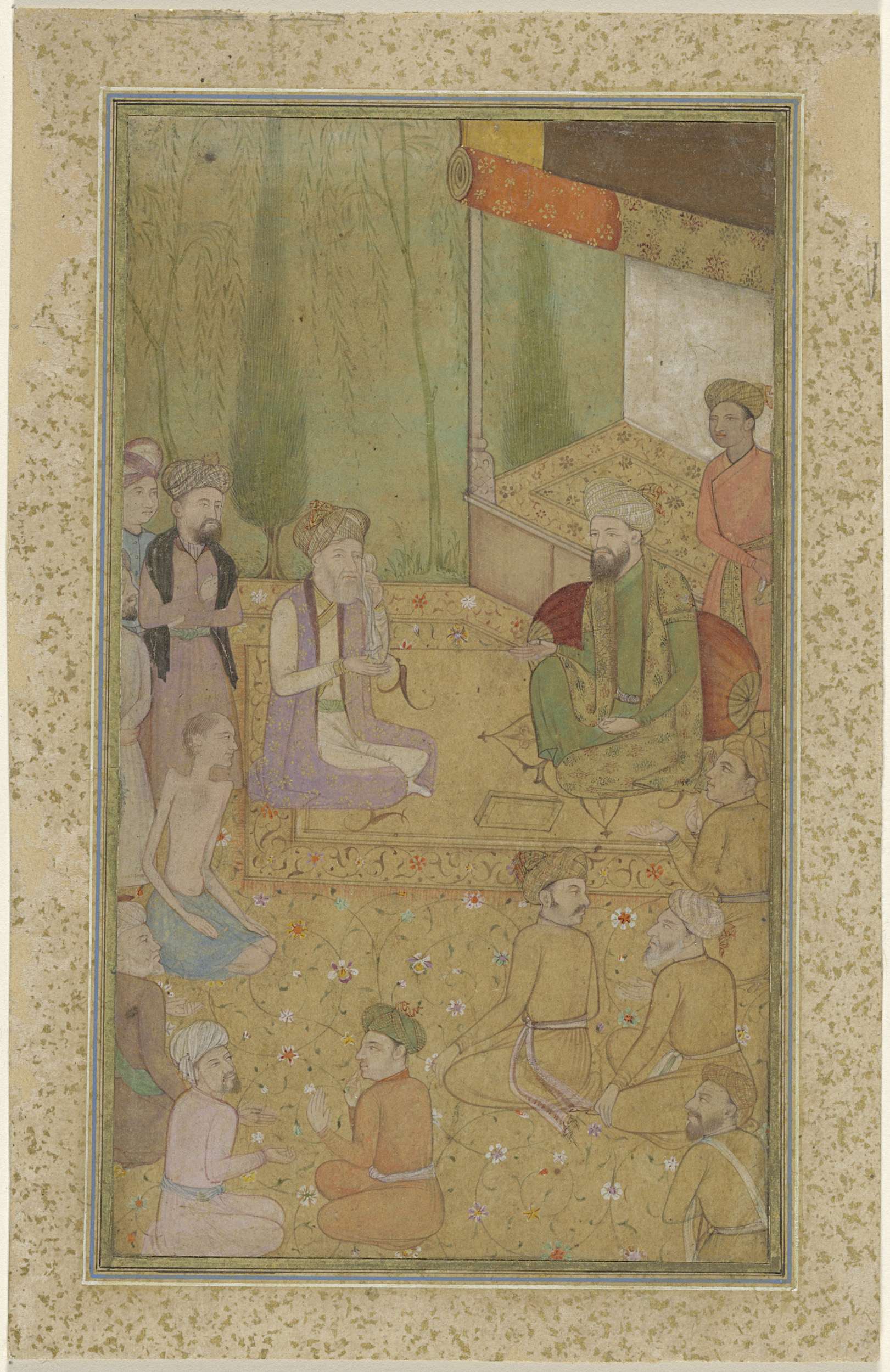 Asceet zittend voor een vorst en zijn hofhouding