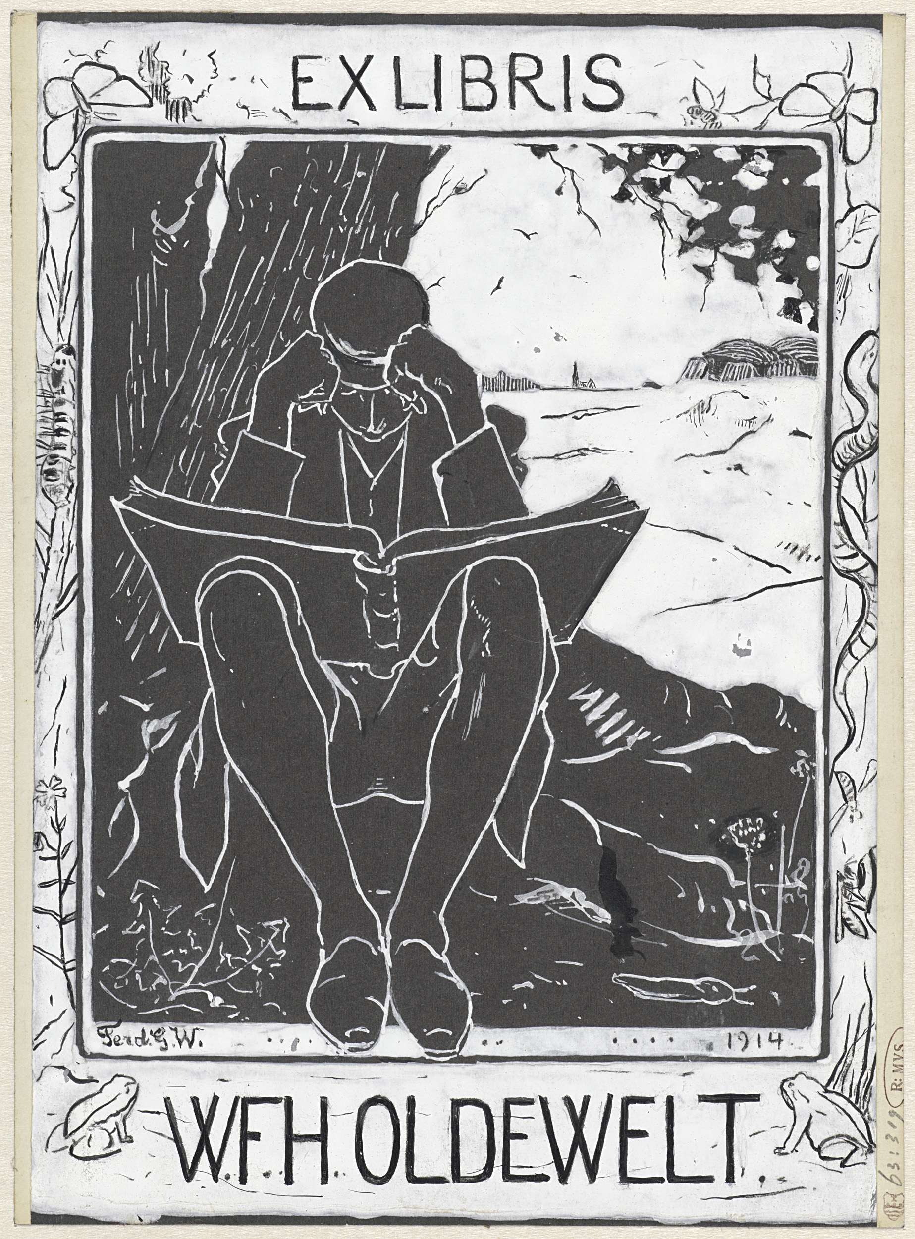 Ontwerp voor ex libris van W.F.H. Oldewelt