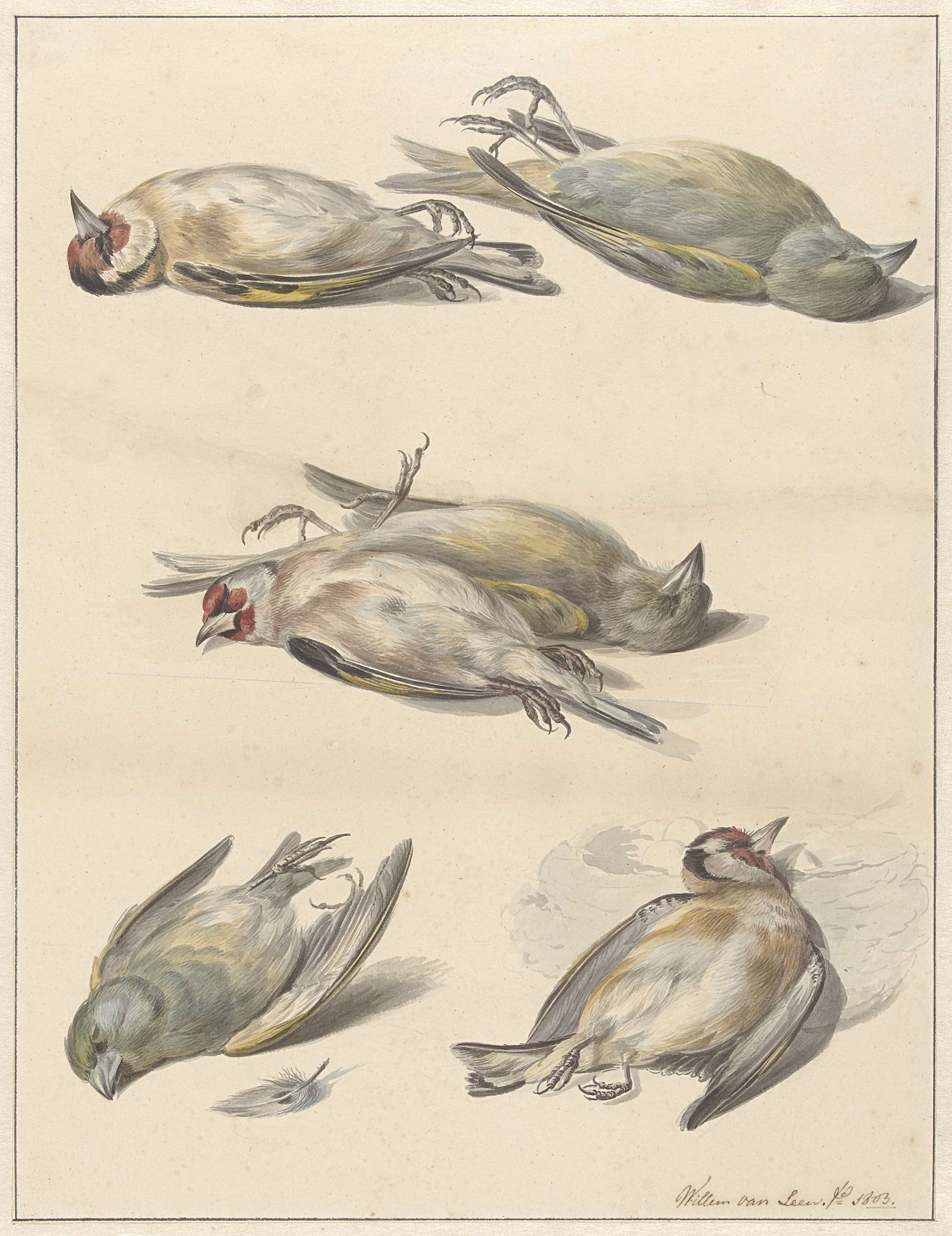 Zes dode vogeltjes