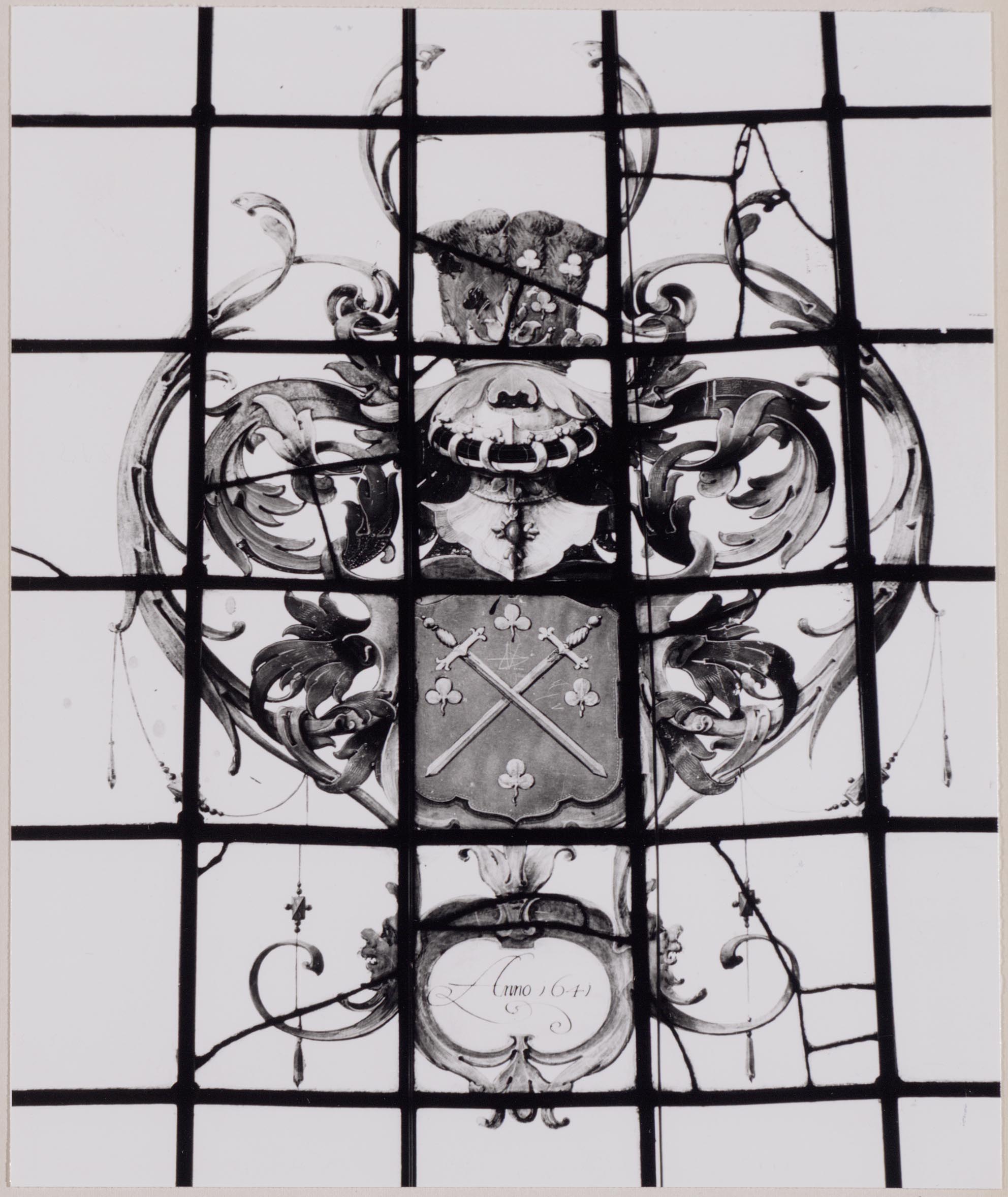 Glas-in-lood raam met het wapen van de familie Van Loo