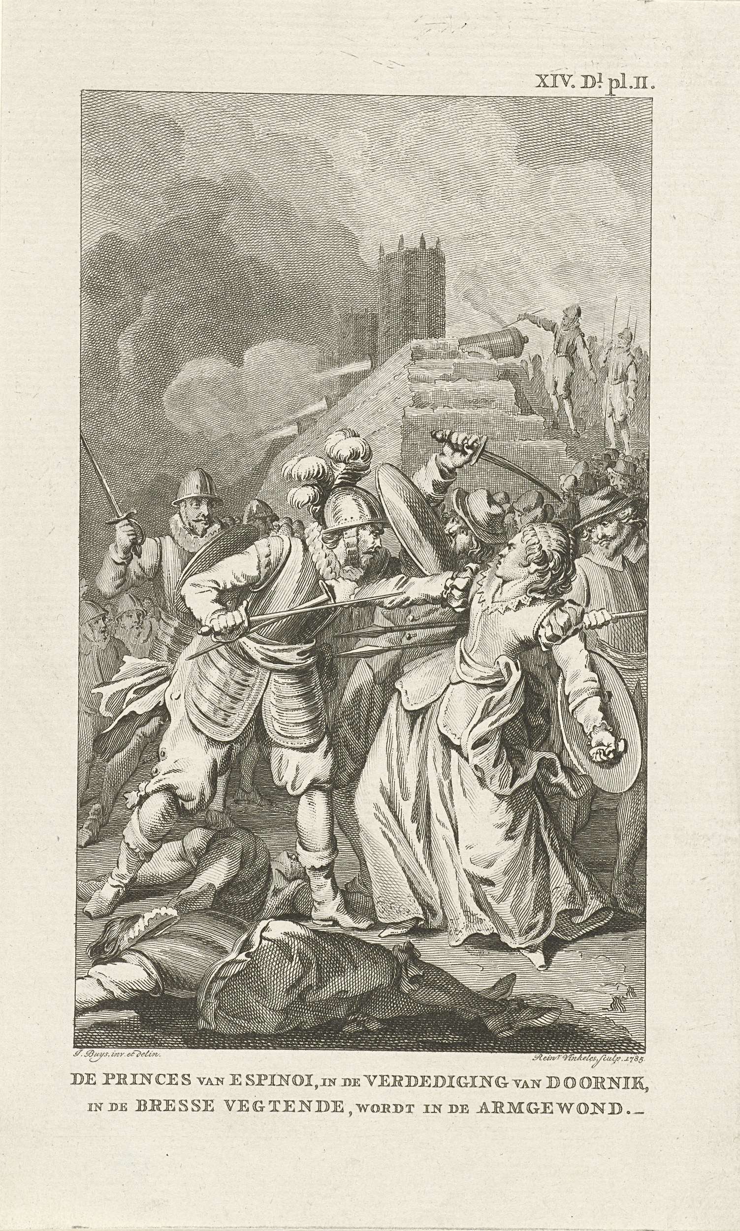 De prinses van Espinoy raakt gewond bij de verdedigi...