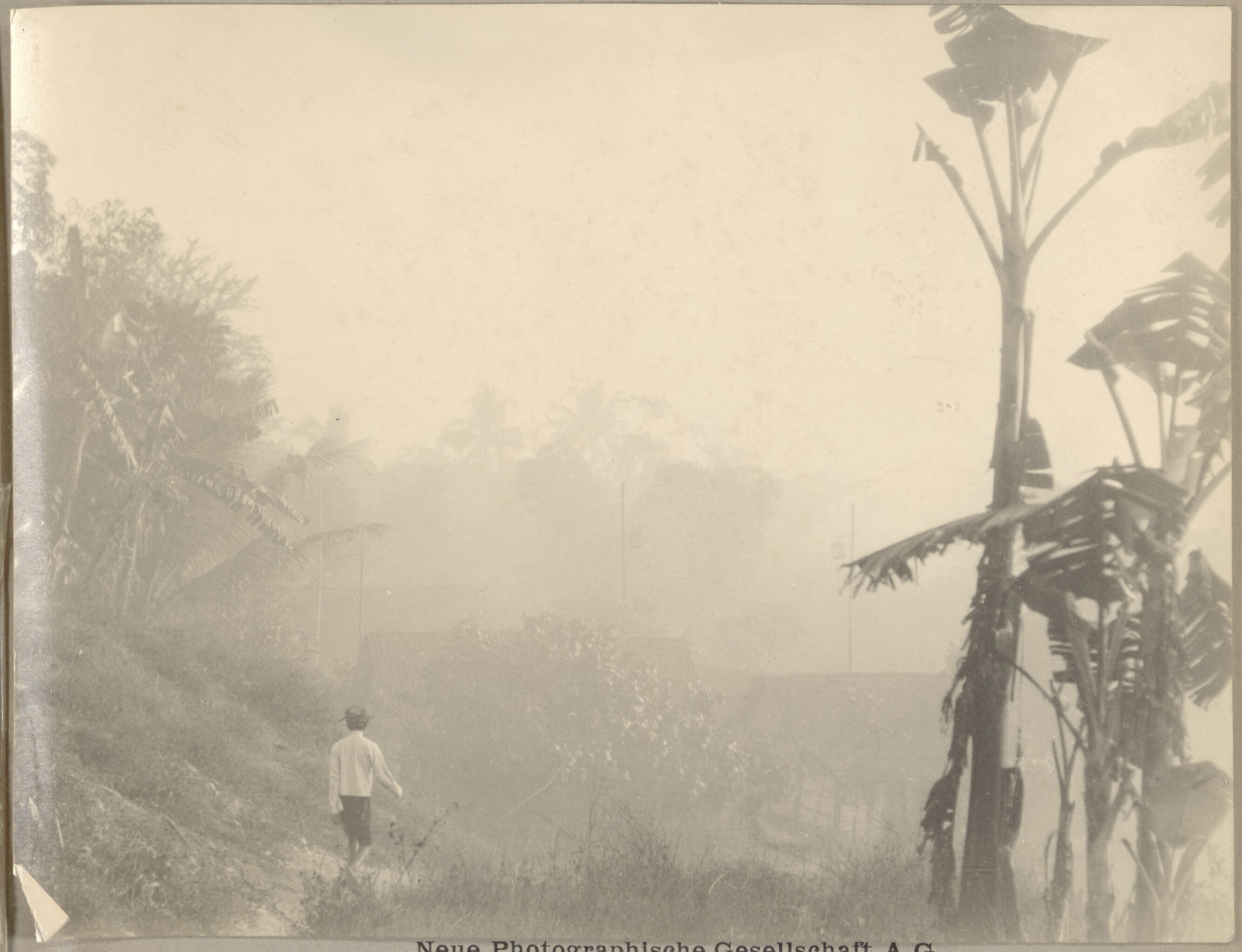 Wandelaar op een pad naar een Javaans (?) dorp