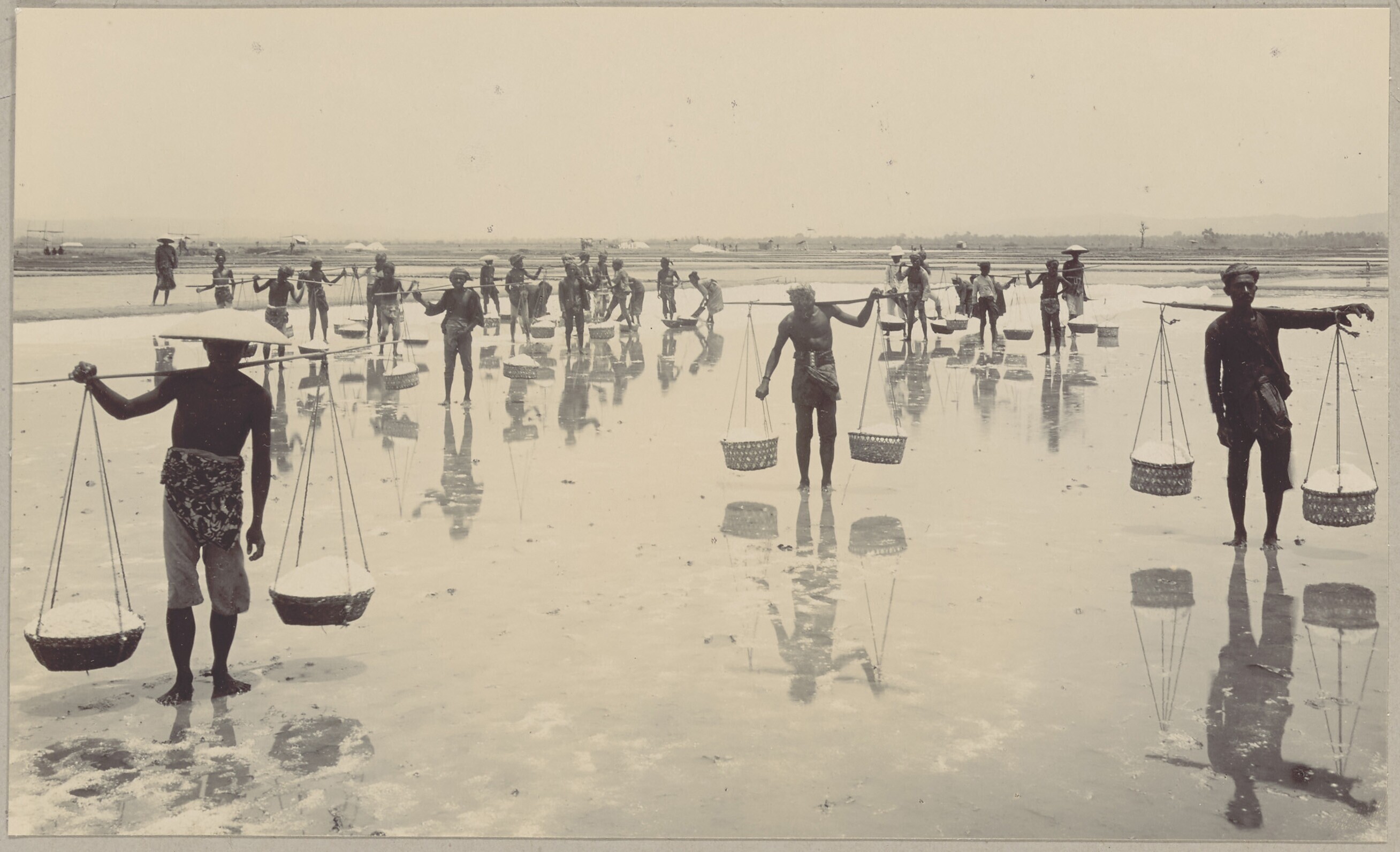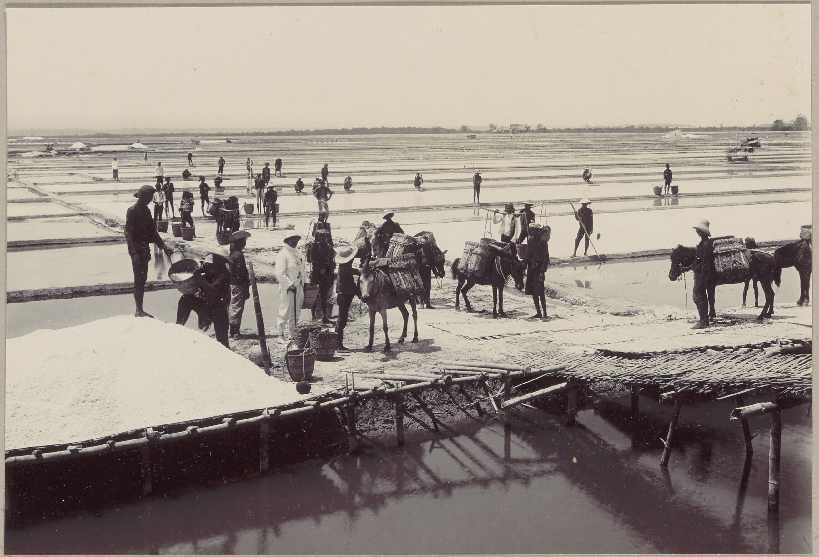 Zoutwinning op een onderneming bij Kalianget, Madoera