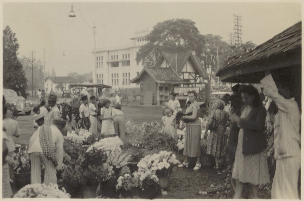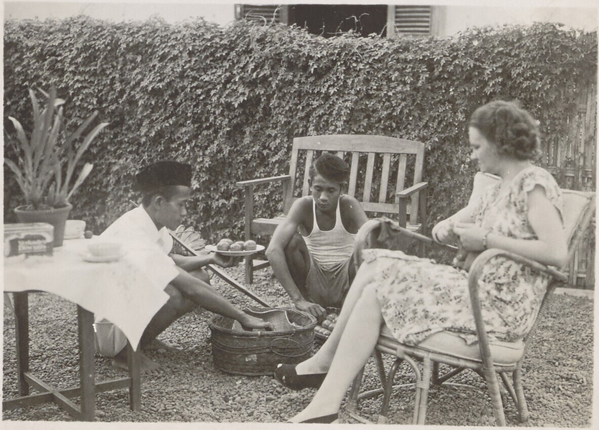 J. Vink-Duiven met een Javaanse verkoper en een lid ...