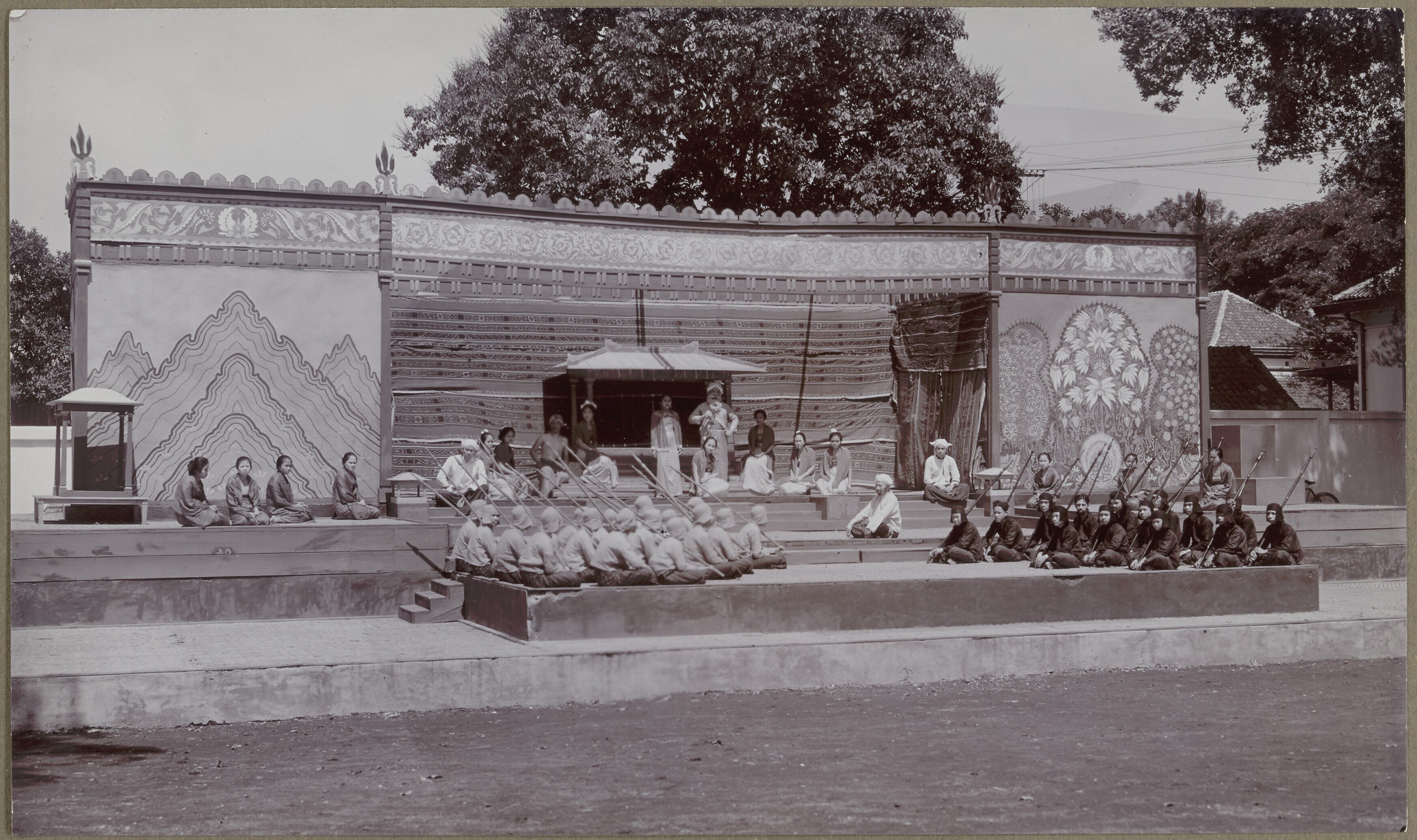 Wajang wong voorstelling op een podium in de open lucht