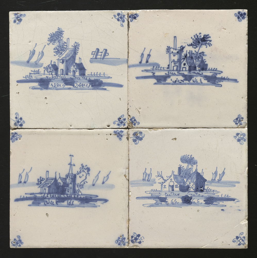 Tegelveld van keramiek, tinglazuur, voorstellende ee...