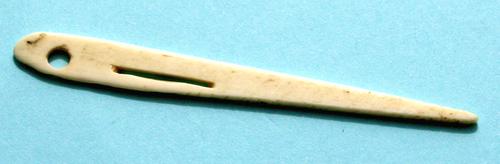 Rijgnaald. Voorzien van oorlepeltje. Getordeerd spir...