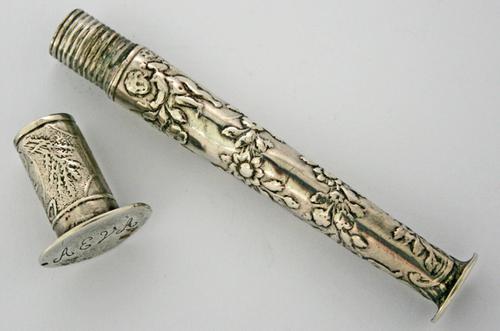 Naaldenkoker. Met bloem en blad decor. Schroefdop ve...
