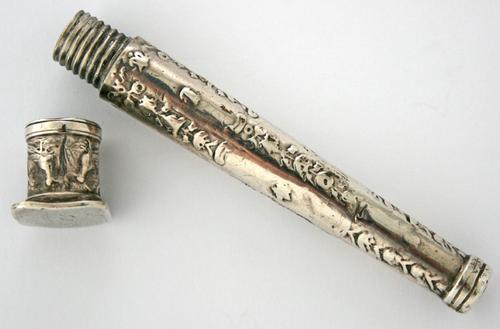 Naaldenkoker met rank- en bladmotief. Op het dekselt...