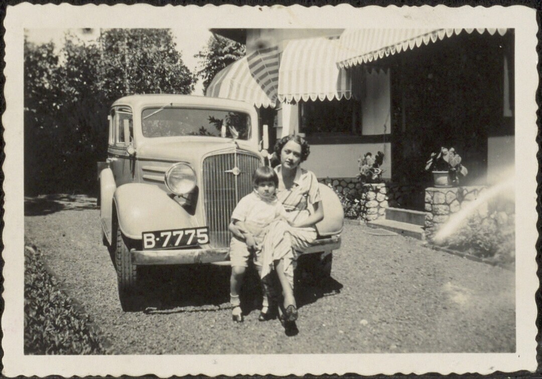 Chevrolet met een vrouw en een peuter zittend op de ...