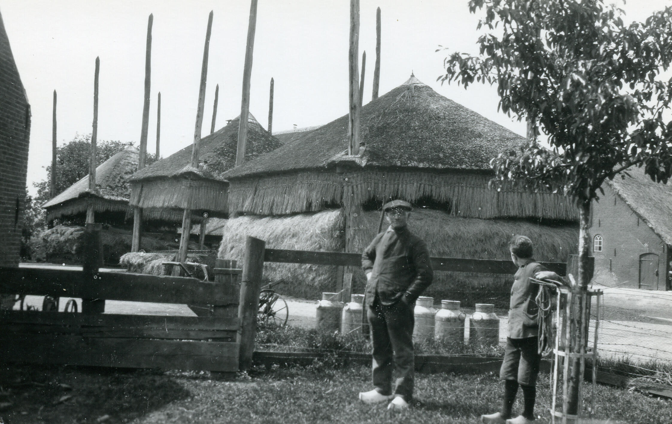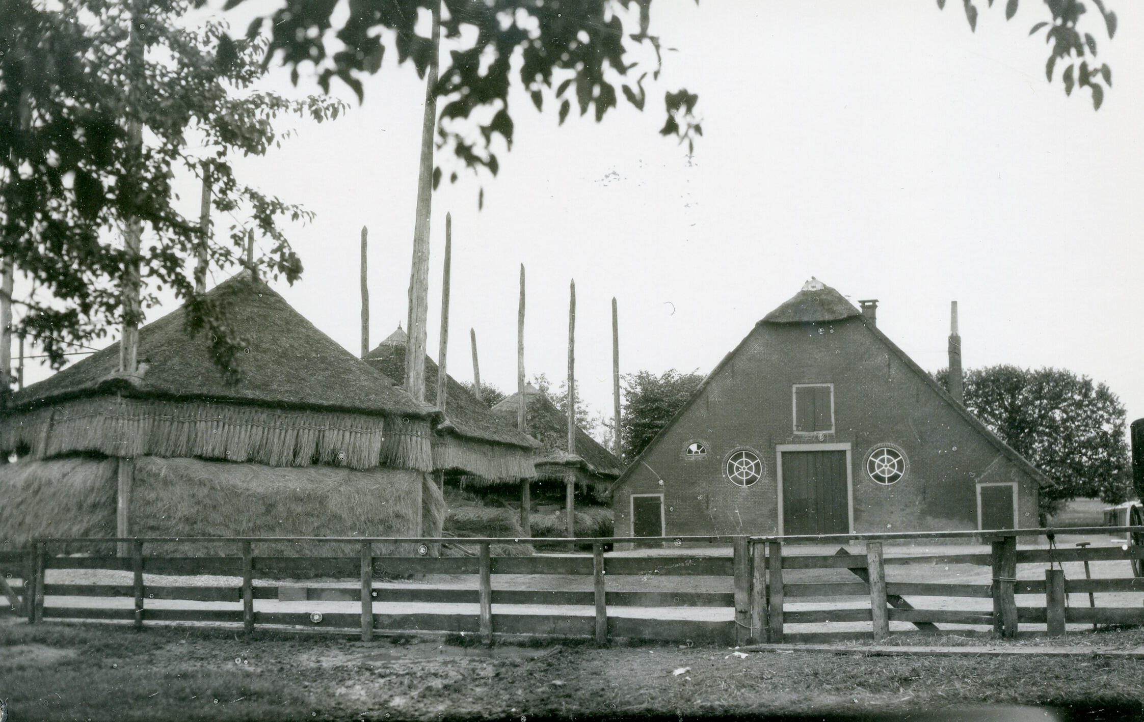 Hooibergen bij een boerderij, IJsselstein, 1930 (zwa...