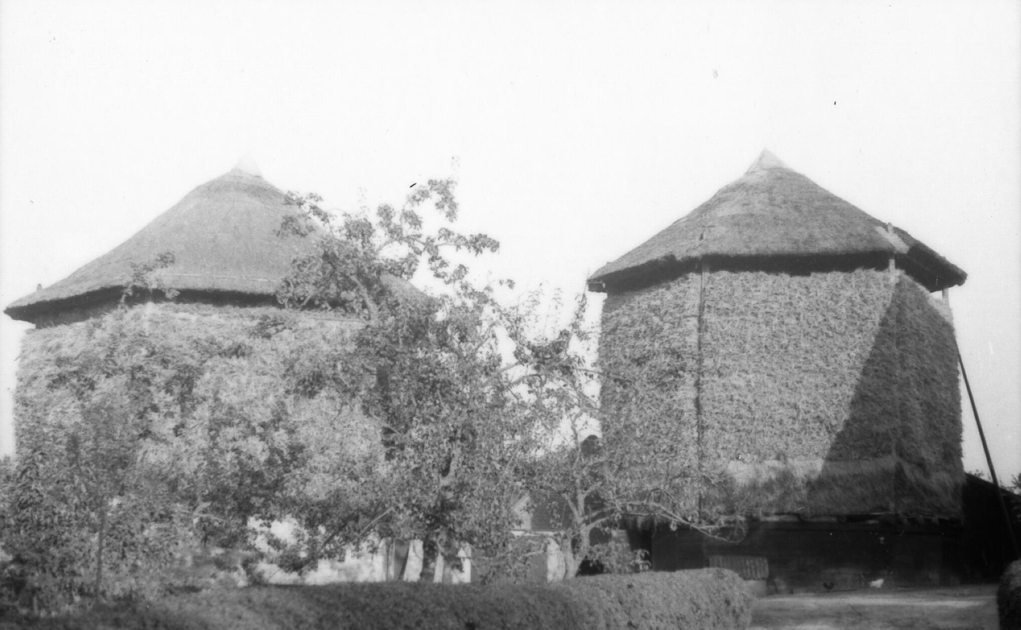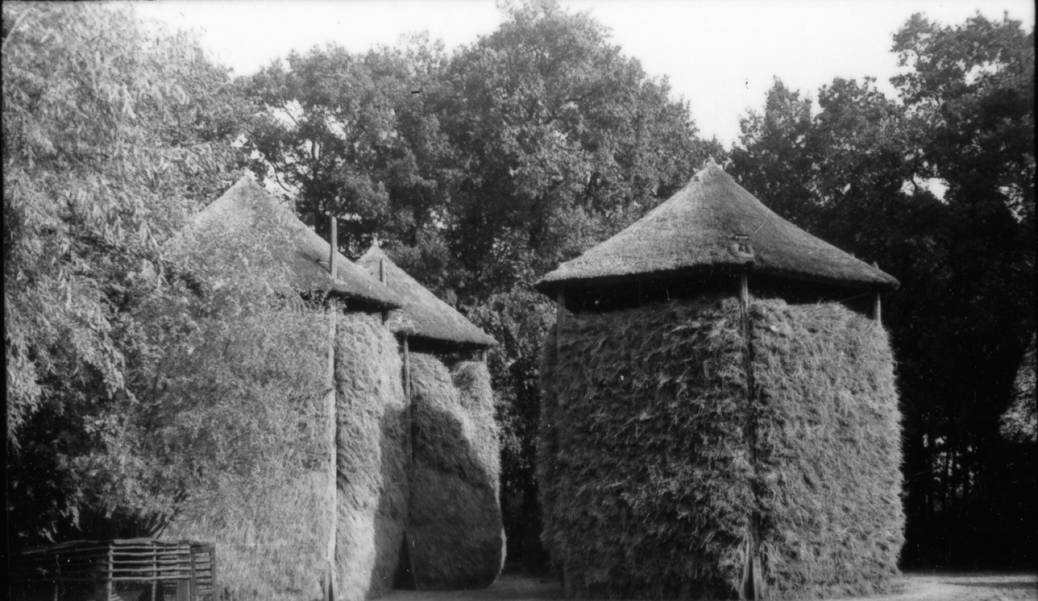 Twee hooibergen, Zetten, 1938 (zwart-wit foto)