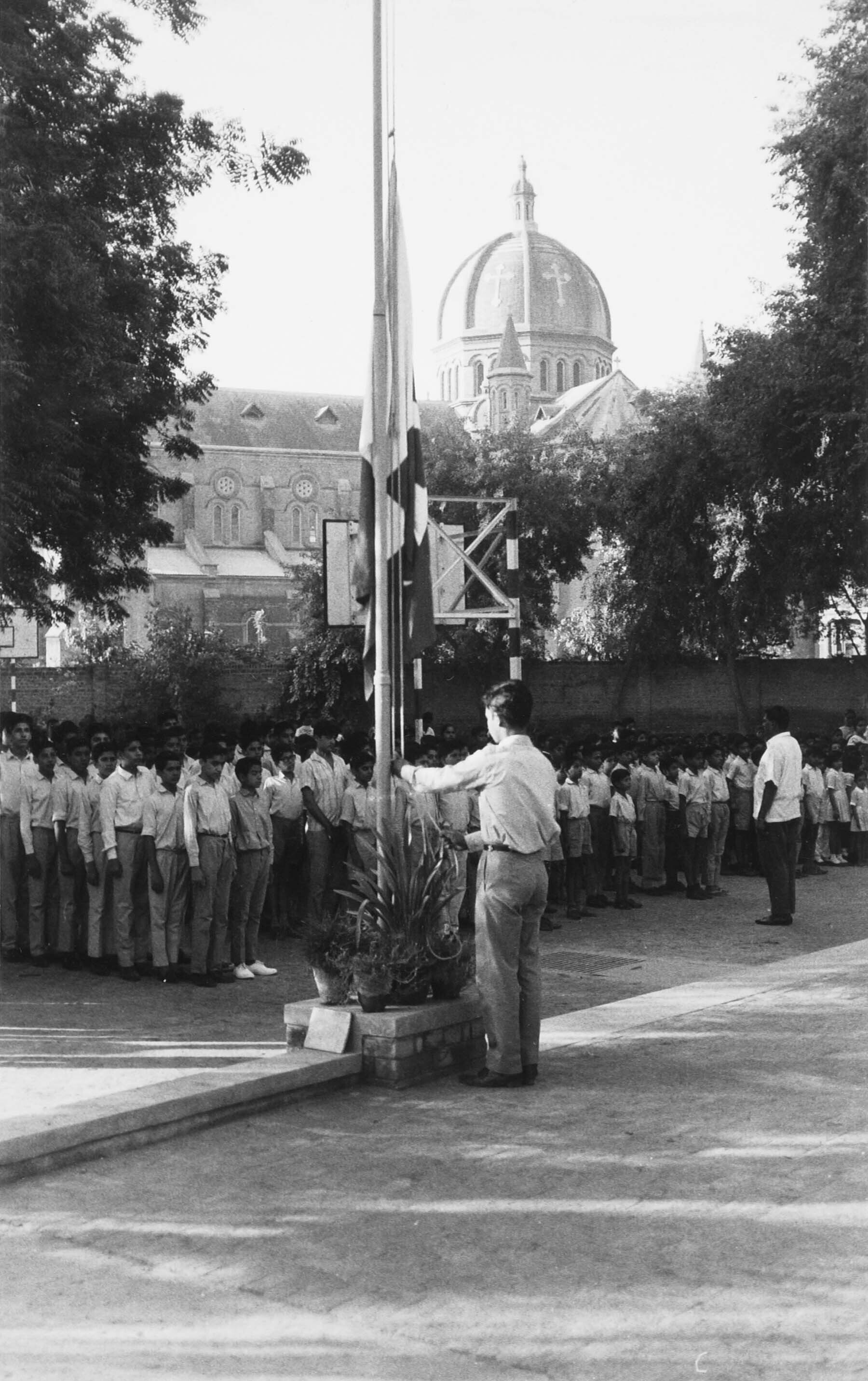 Dagelijkse ceremonie van het hijsen van de vlag bij ...