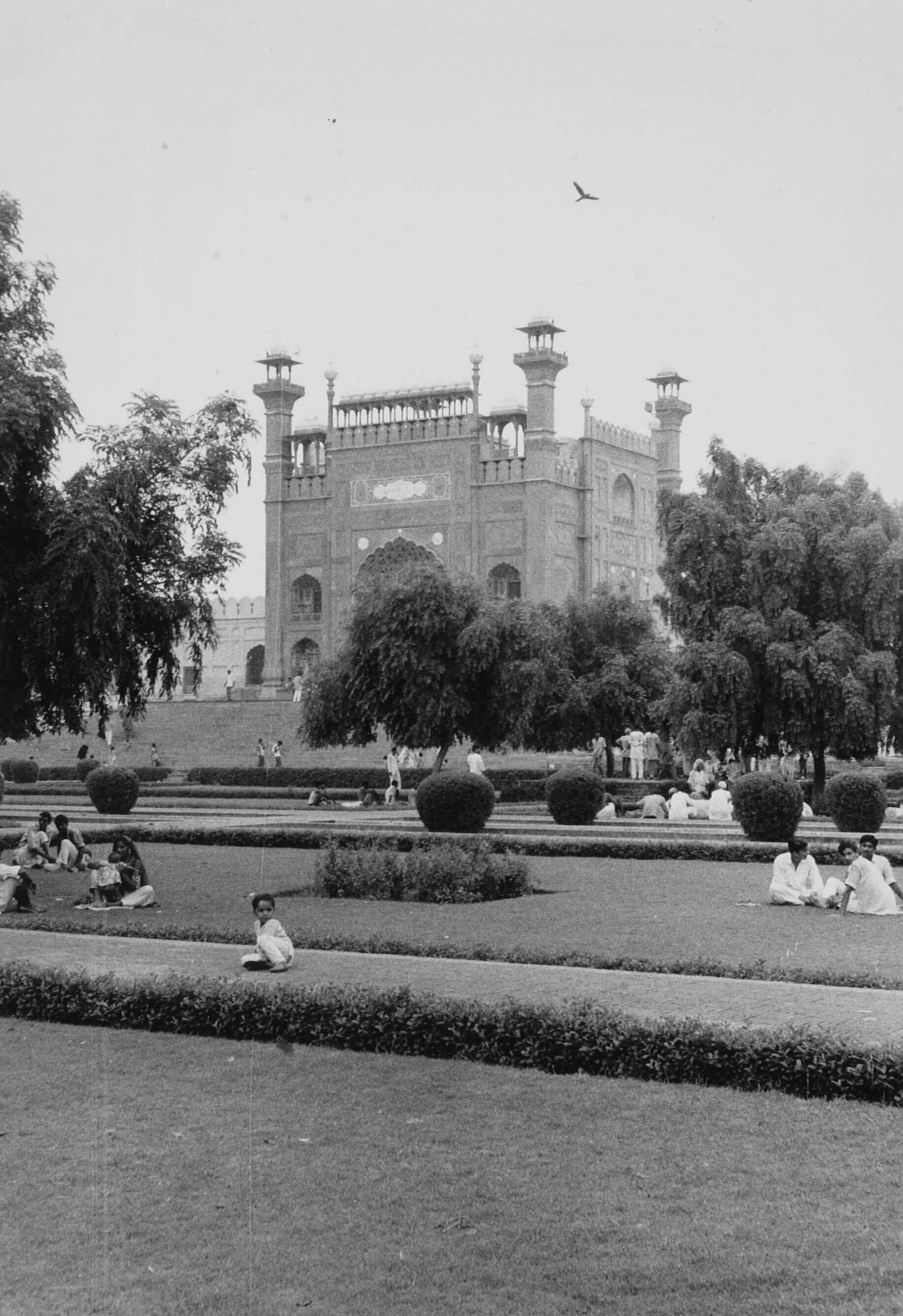 Ingangspoort Badshahi Moskee vanauit de daarvoor gel...