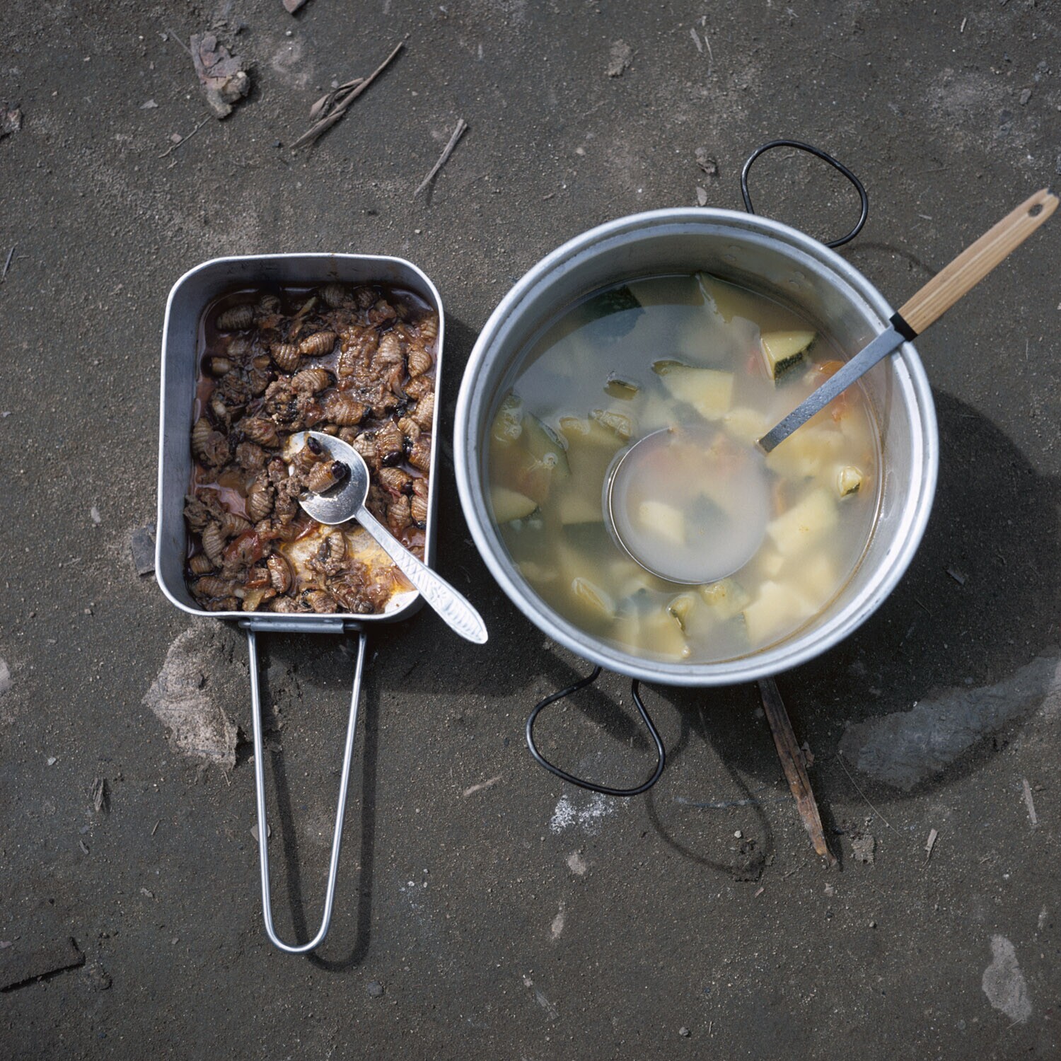 Maaltijd van de expeditie, bestaande uit o.a. gebakk...