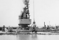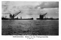 Drijvende kranen bij het sluitgat van de Wieringerme...