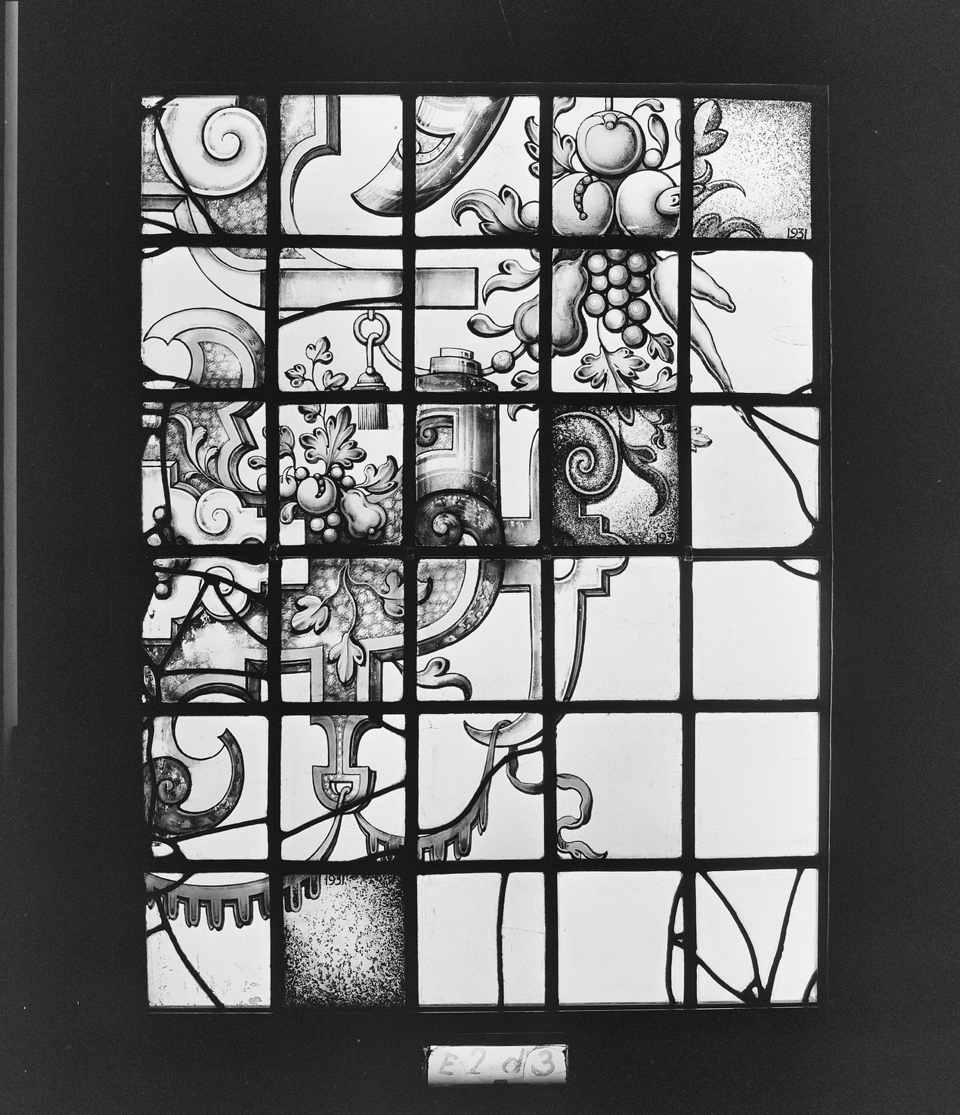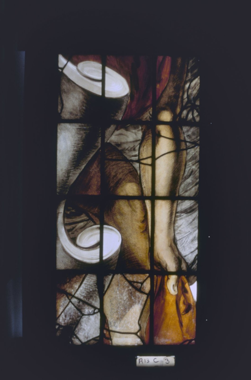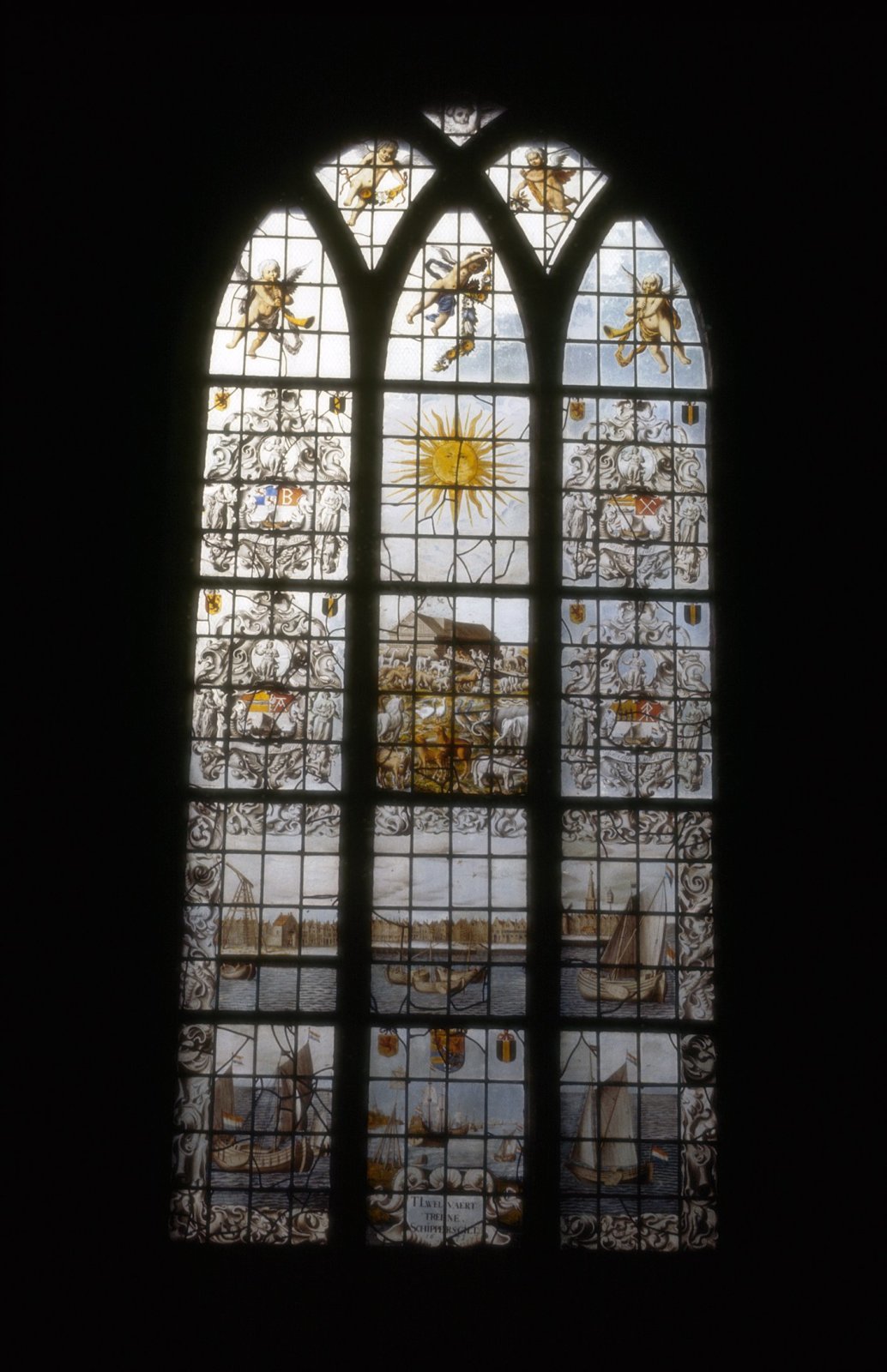 Interieur, gebrandschilderd glas, raam 13: "Wapen va...