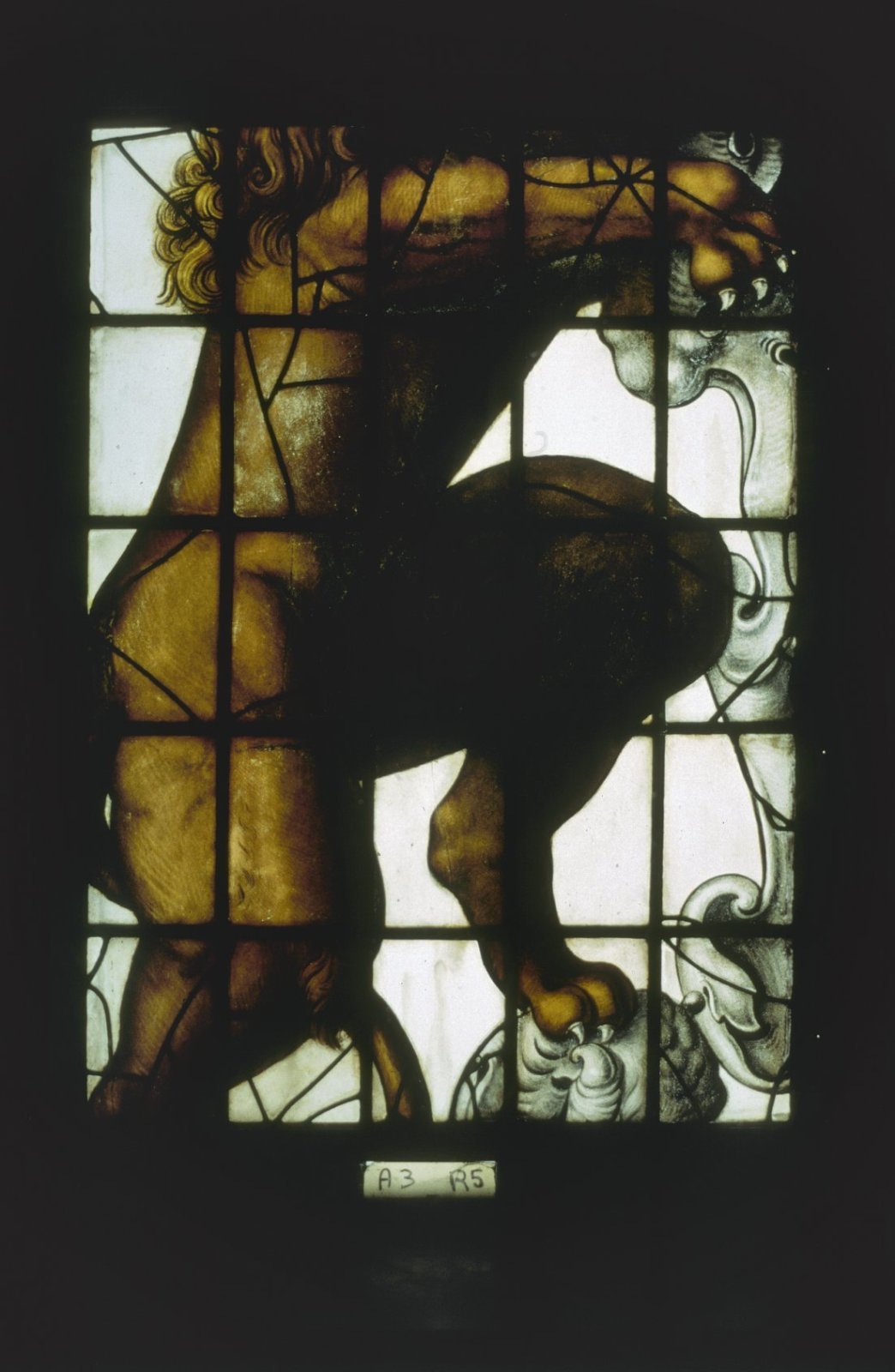 Interieur, gebrandschilderd glas nr. 5: "Wapen van A...