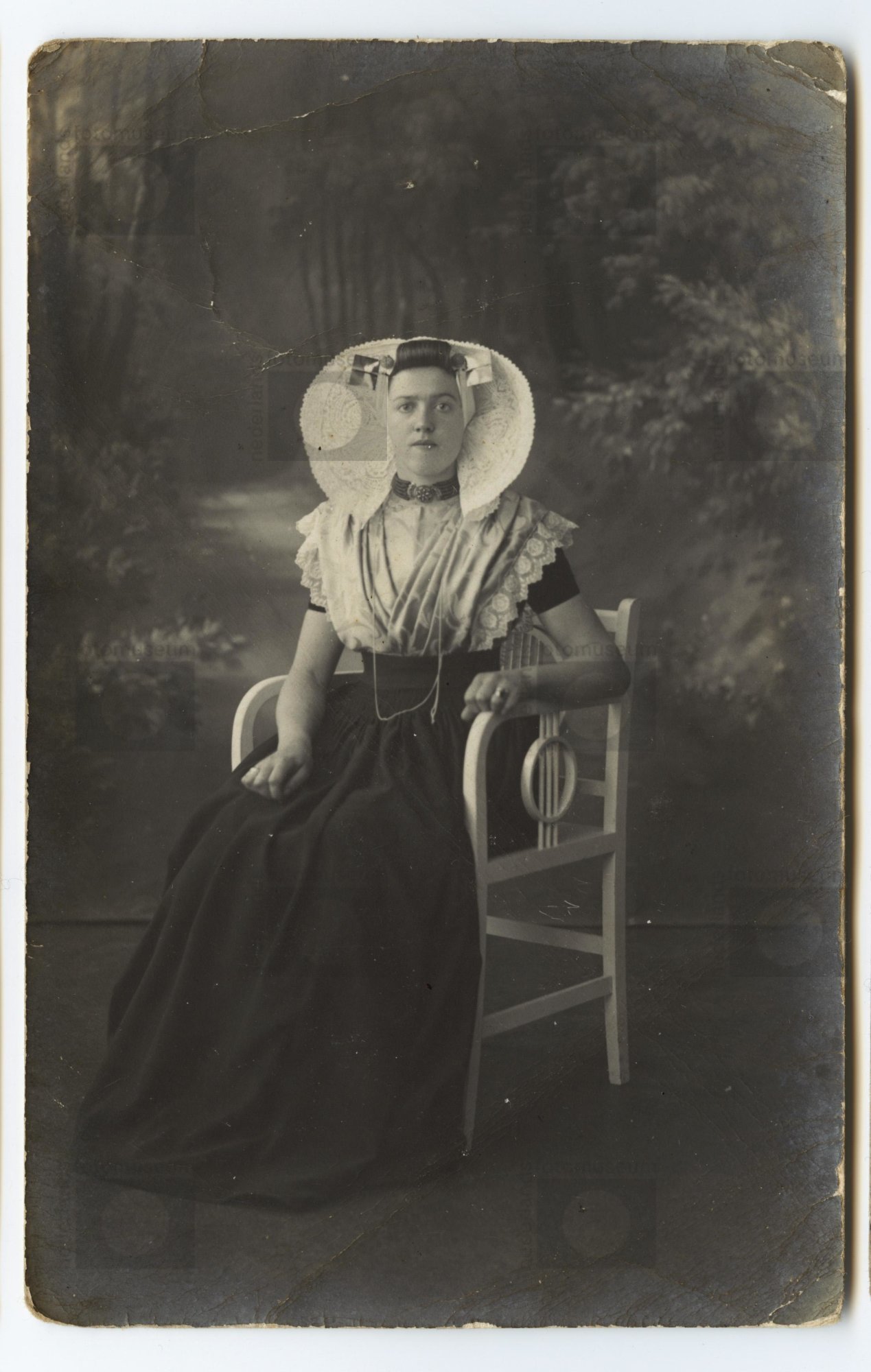 Ansichtkaart, portret van vrouw in Zuid-Bevelandse p...