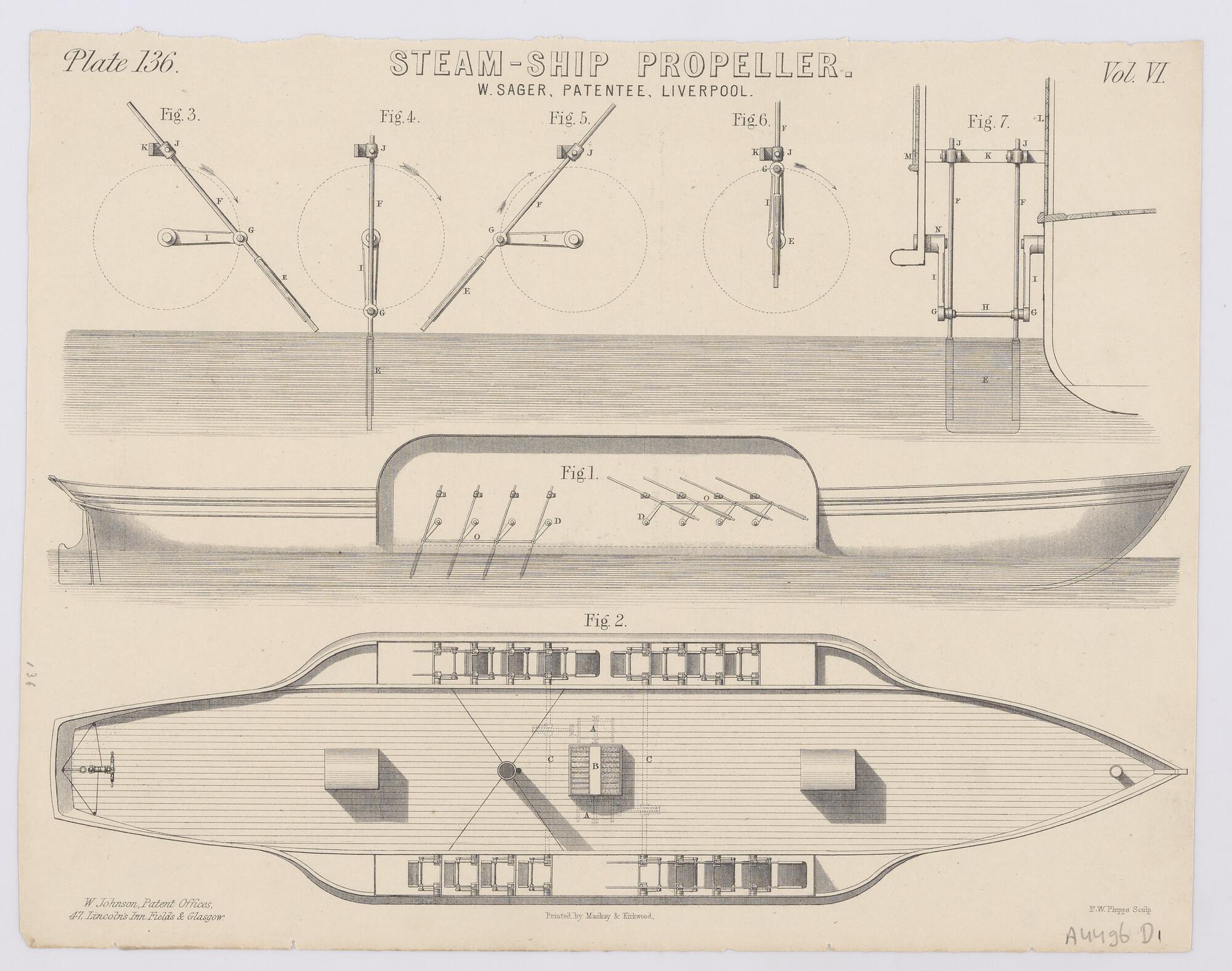 Algemeen plan van een stoomschip met riempeddelaandr...