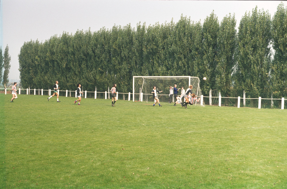 Kleurendia van een herenvoetbalwedstrijd op een veld...