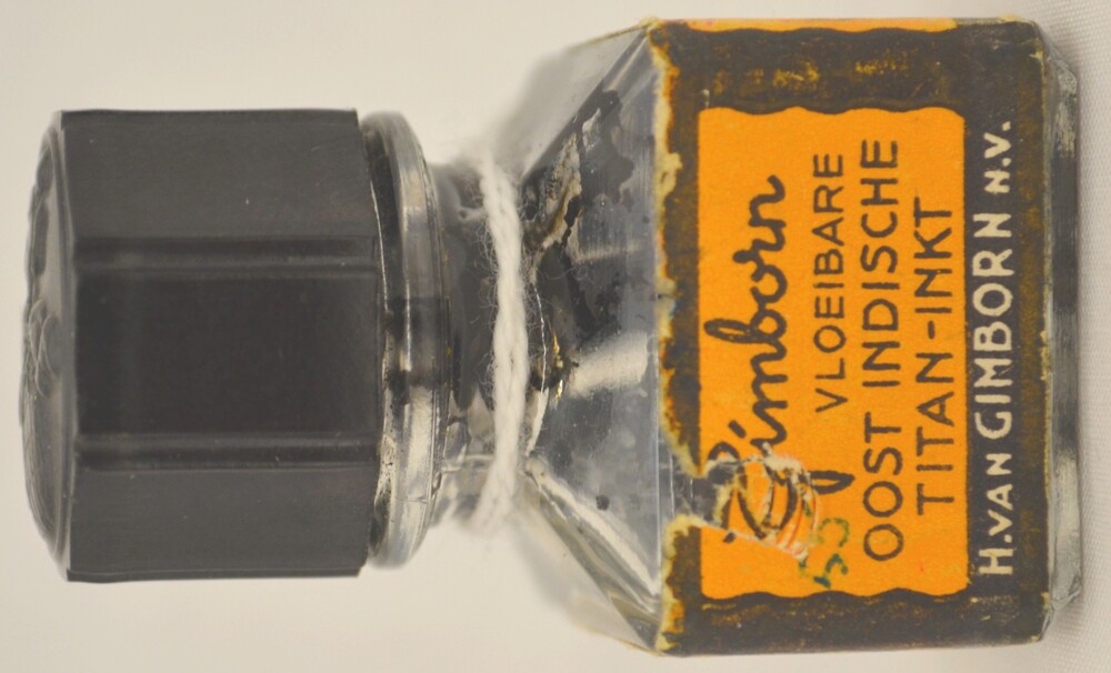 Vierkante flesje met restantje Oost-Indische titan t...