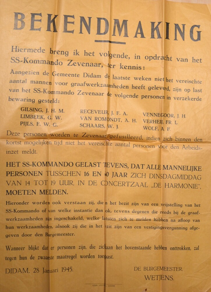 Bekendmaking op papier in opdracht van het SS-Komman...