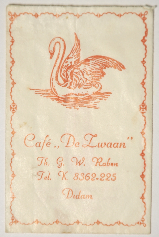 Suikerzakjes van papier van Café 'De Zwaan' te Didam...