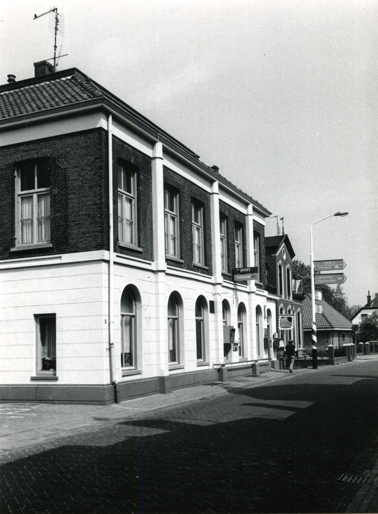 Zwart-wit foto van het postkantoor te Lobith op 4 me...