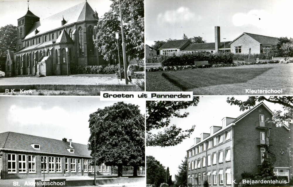 Ansichtkaart met 4 gebouwen in Pannerden in 1972