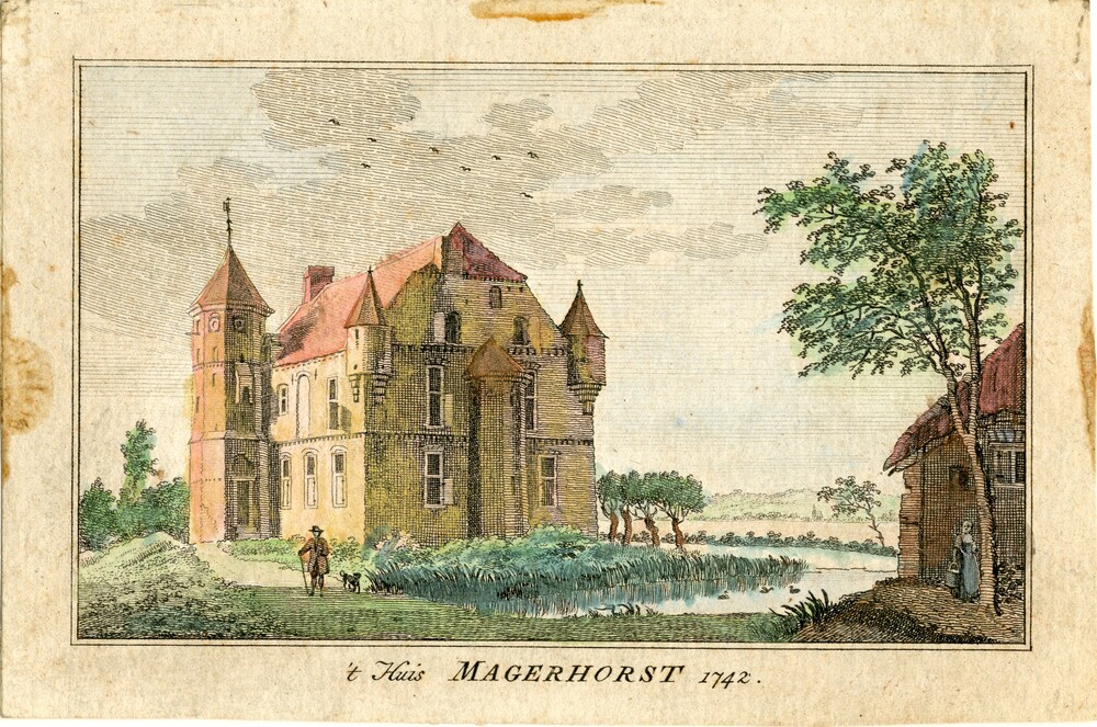 Gravure op papier voorstellende ‘t Huis Magerhorst i...