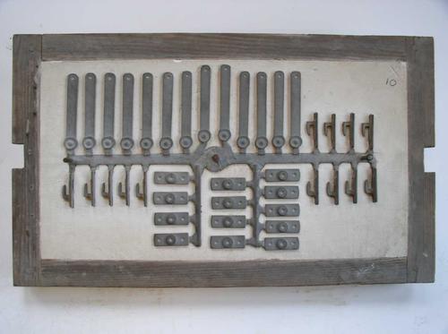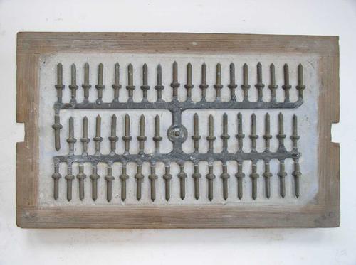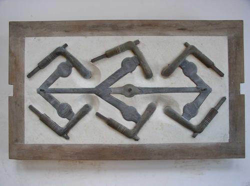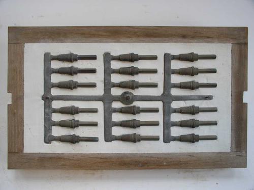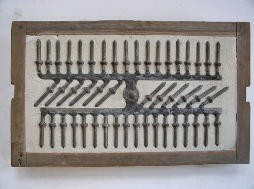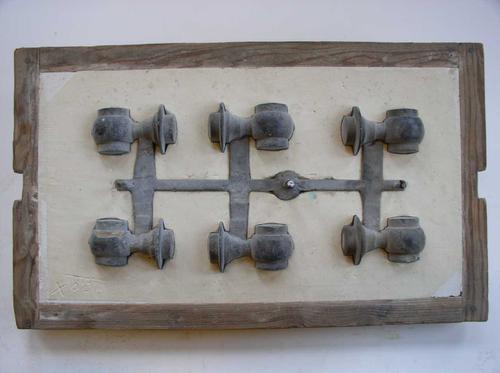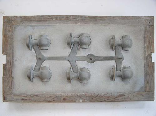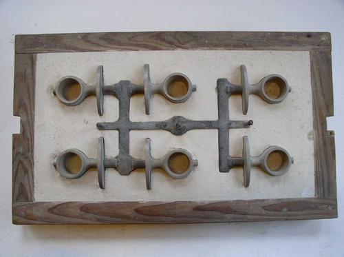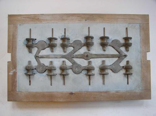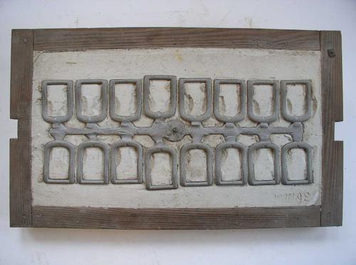 Gietmal met 18 borstweringen voor posthoornkrukken.